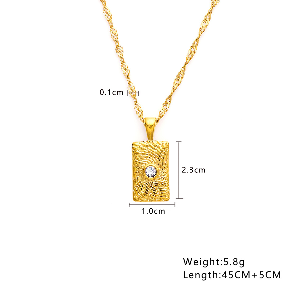 JY02FF New French Vintage Necklace Inlaid Zircon Clavicle Chain Spiral Pattern Titanium Steel Square Pendant Necklace Women (Material: titanium steel)