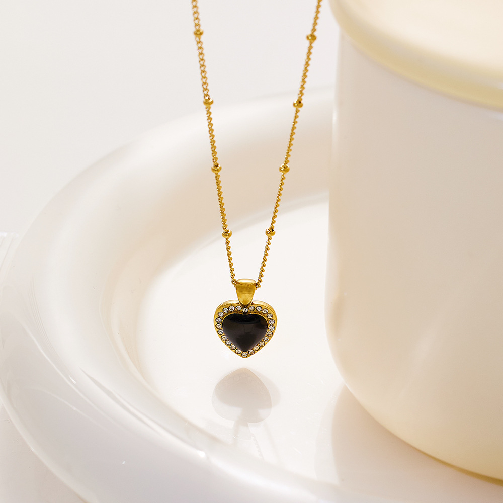 Increase quantity for JY02FF New Ins Style Color Titanium Steel Love Pendant Simple Luxury Diamond Necklace Necklace Ladies Wholesale (Material: titanium steel)