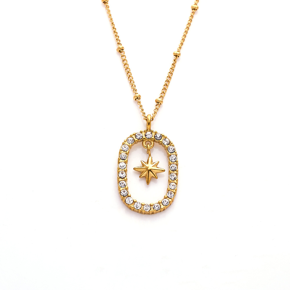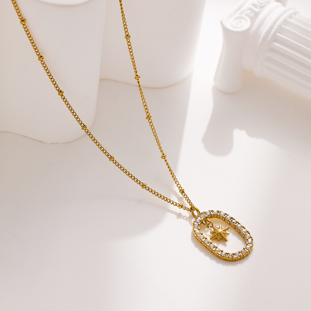 JY02FF New Jewelry Niche Design High-end Luxury Necklace Women's European And American Oval Pendant Clavicle Chain Wholesale (Material: titanium steel)