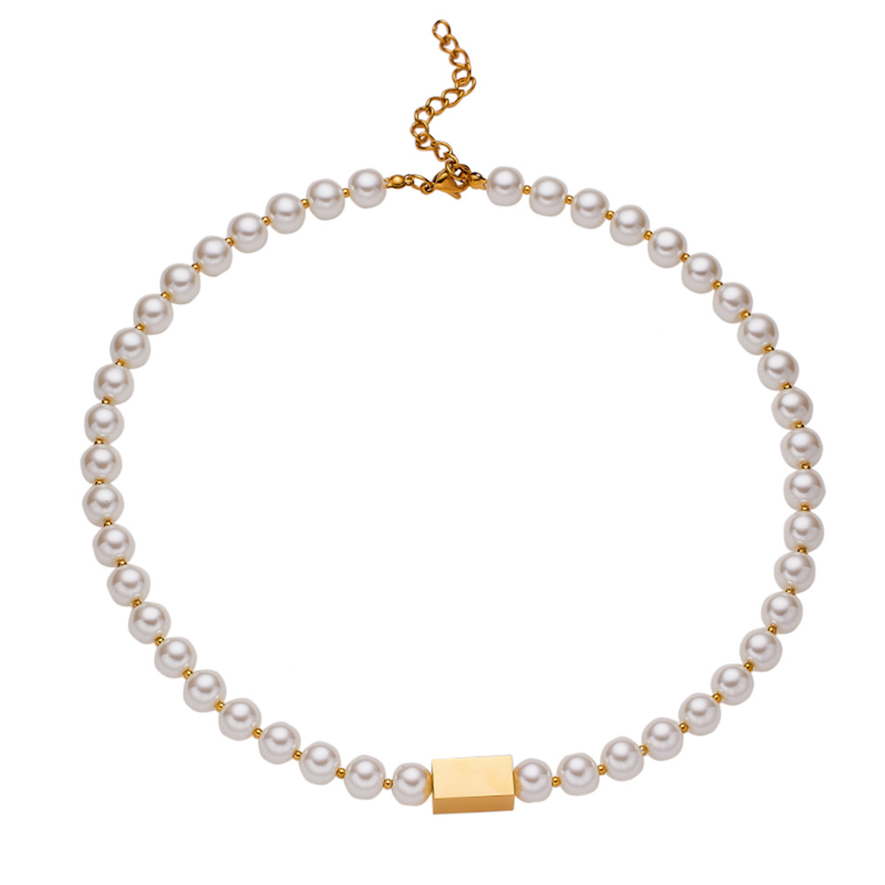 JY02FF Simple Ins Vintage Pearl Collarbone Chain Vacuum Plated 18k Gold Simple All-match Pearl Necklace Jewelry (Material: titanium steel)