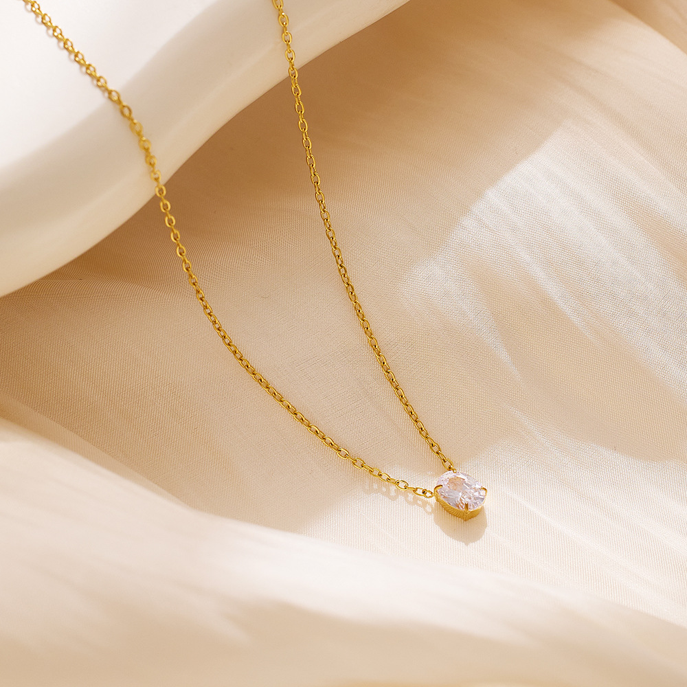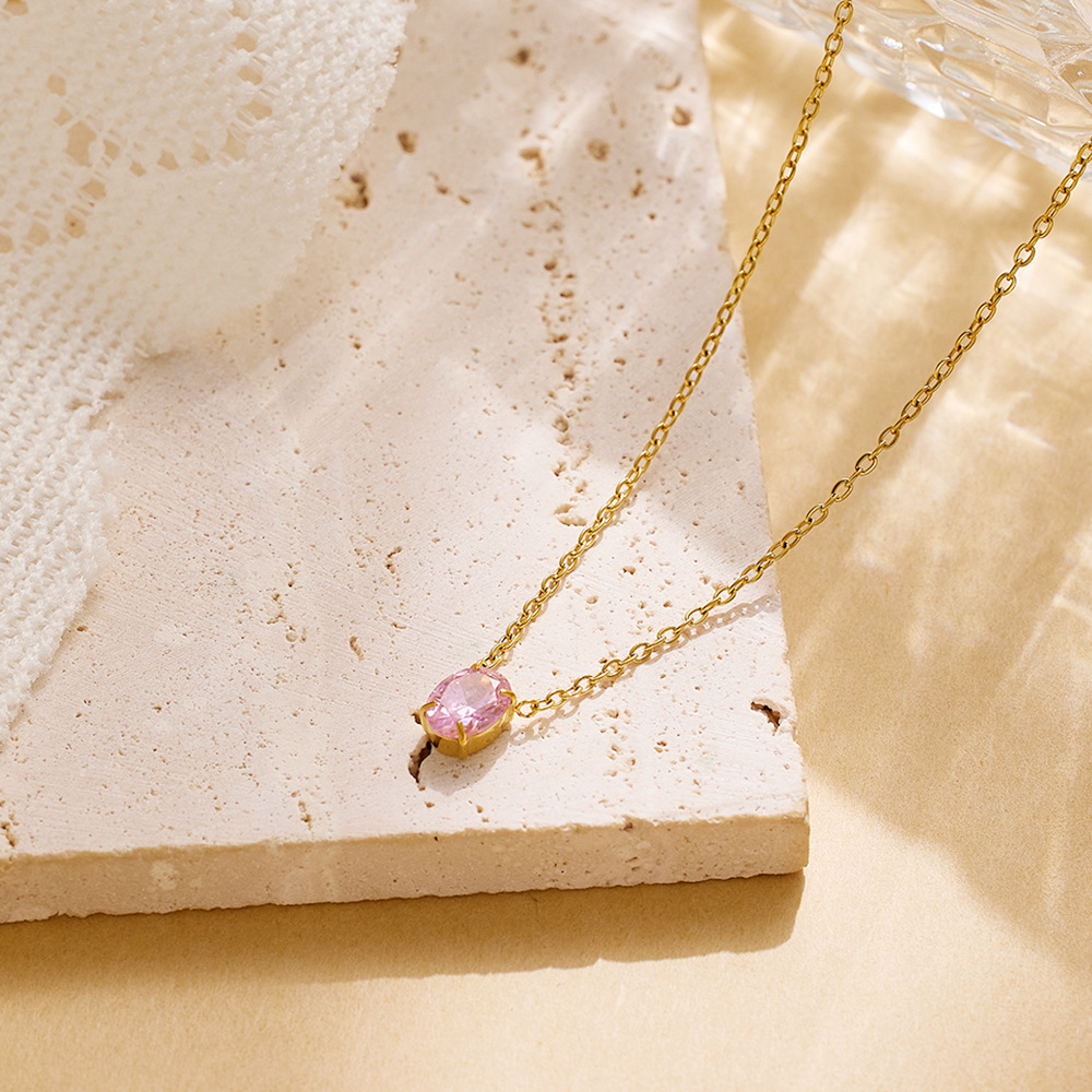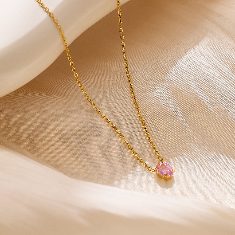 JY02FFNet Red With Niche Design Stainless Steel Clavicle Chain Women Plated 18k Gold Color Zircon Necklace Jewelry Batch (Material: titanium steel)