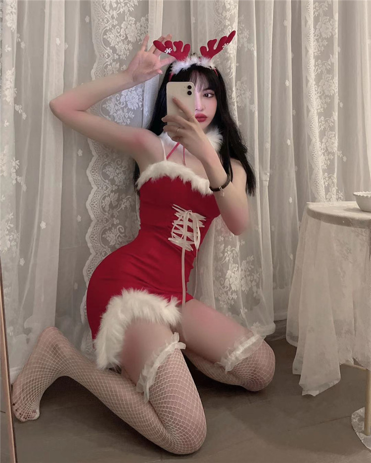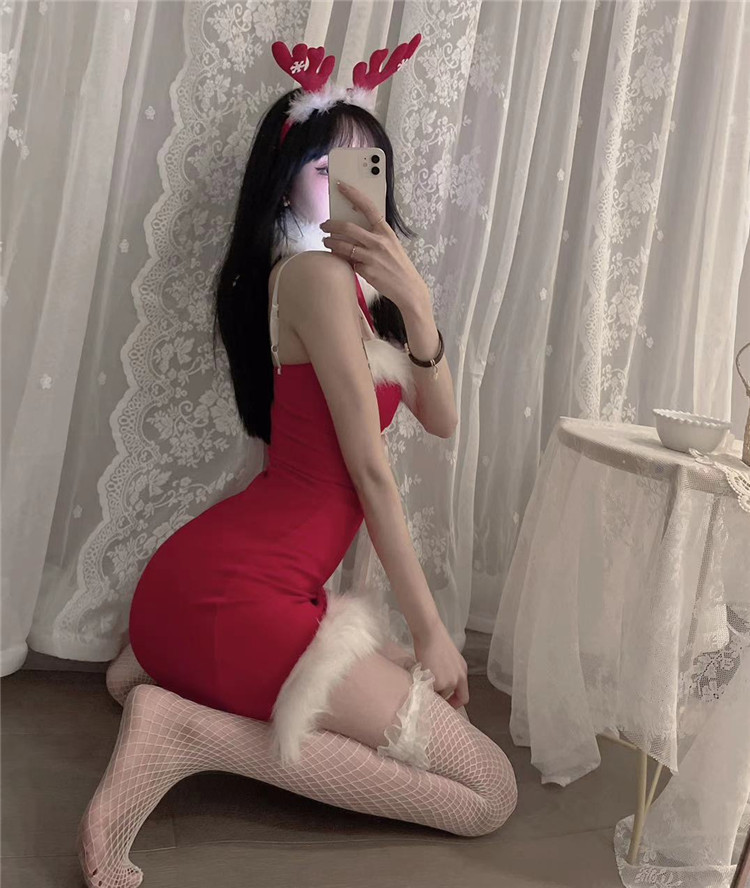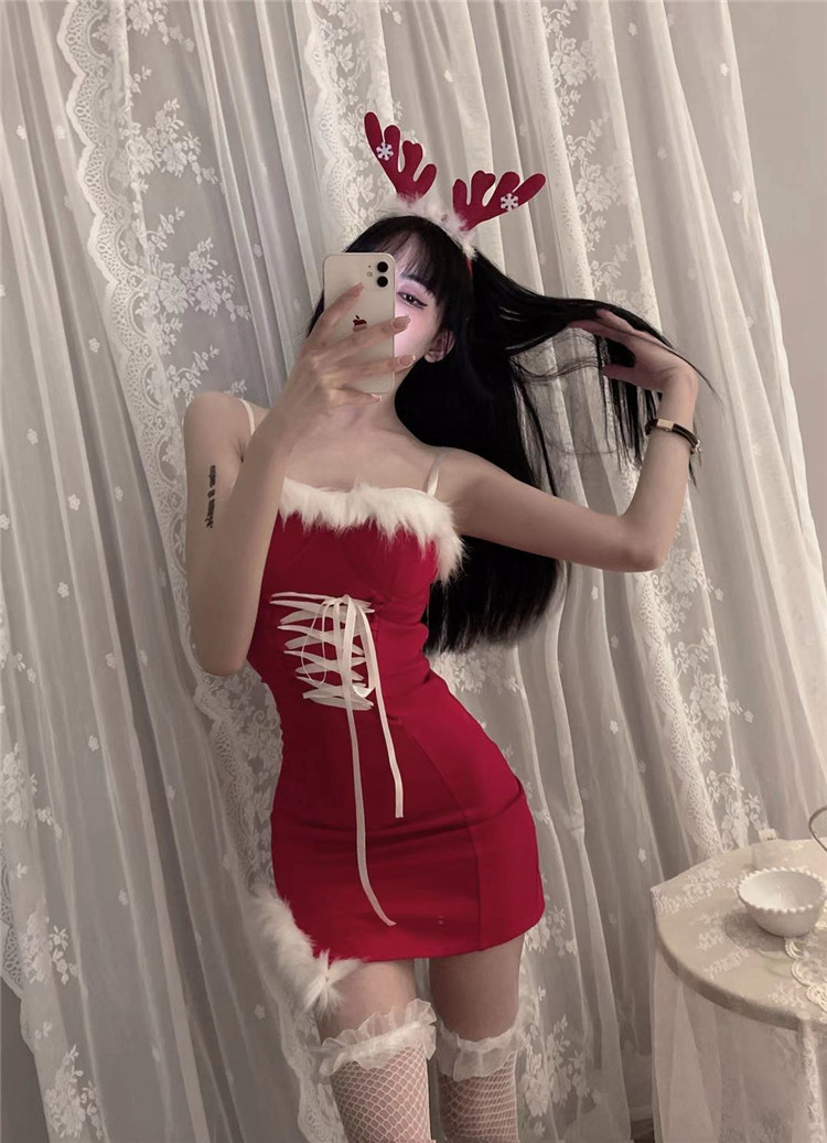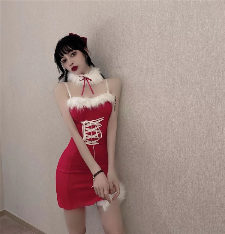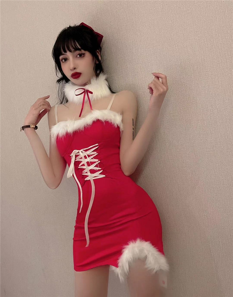 Decrease quantity for JR01QJ 2023 Women's Sexy Christmas Sling Strap Split Hip Dress