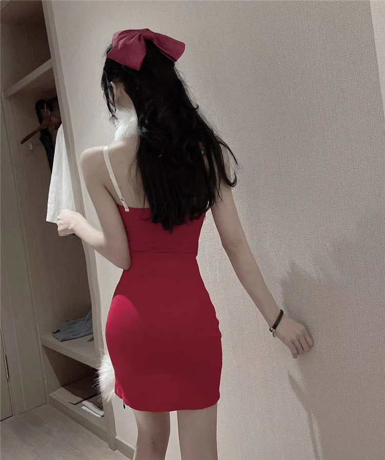 Increase quantity for JR01QJ 2023 Women's Sexy Christmas Sling Strap Split Hip Dress