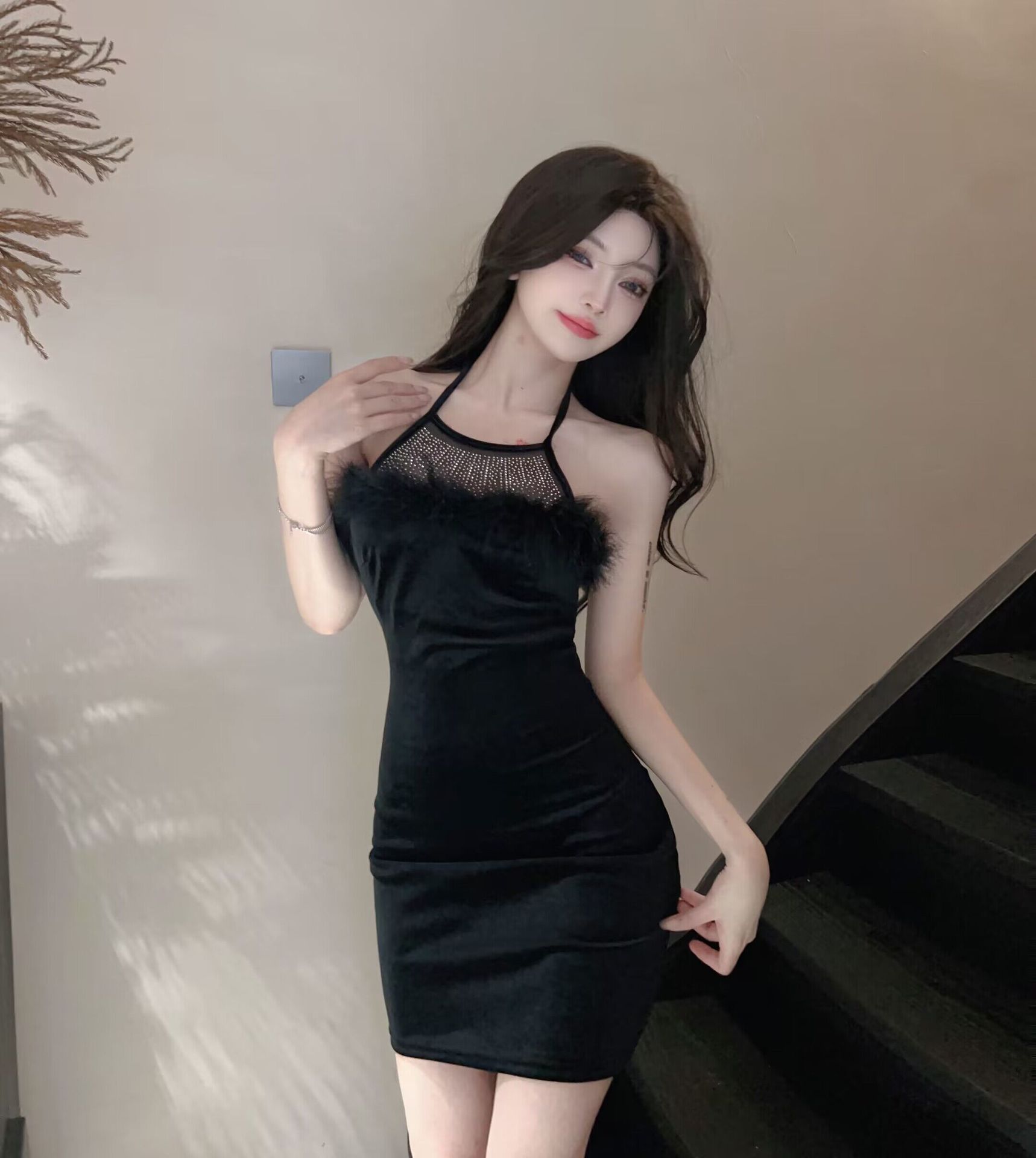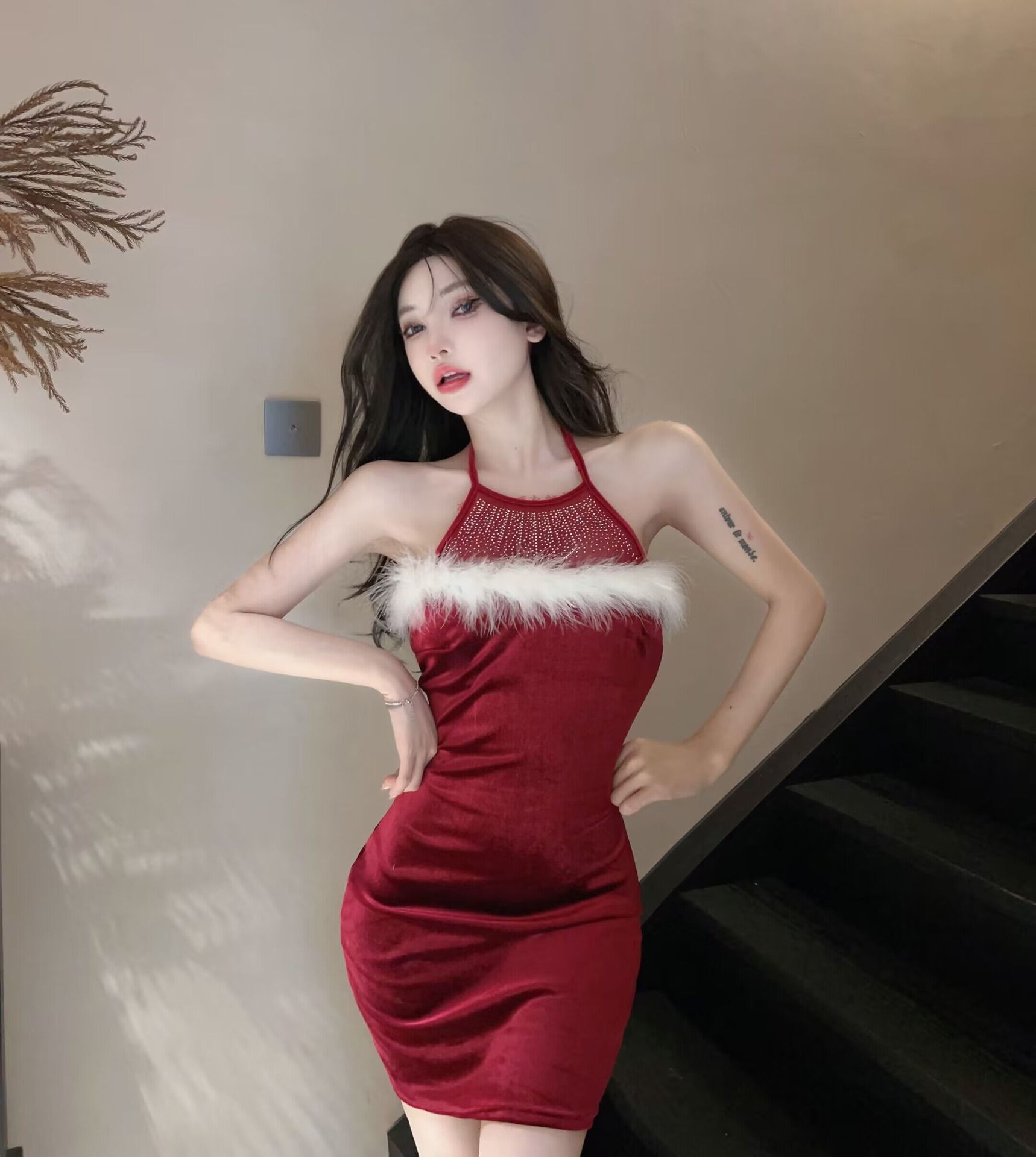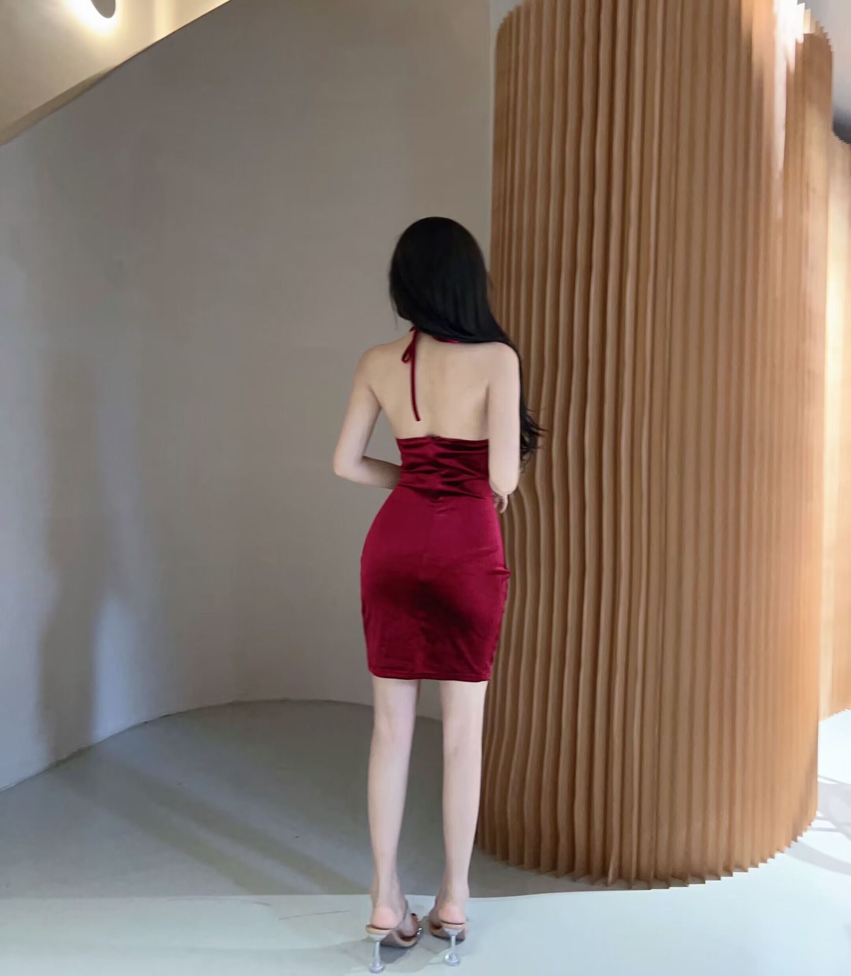 JR01QJ Wholesale Sexy Anchor Neck Pleated Backless Tight Christmas Hip Dress