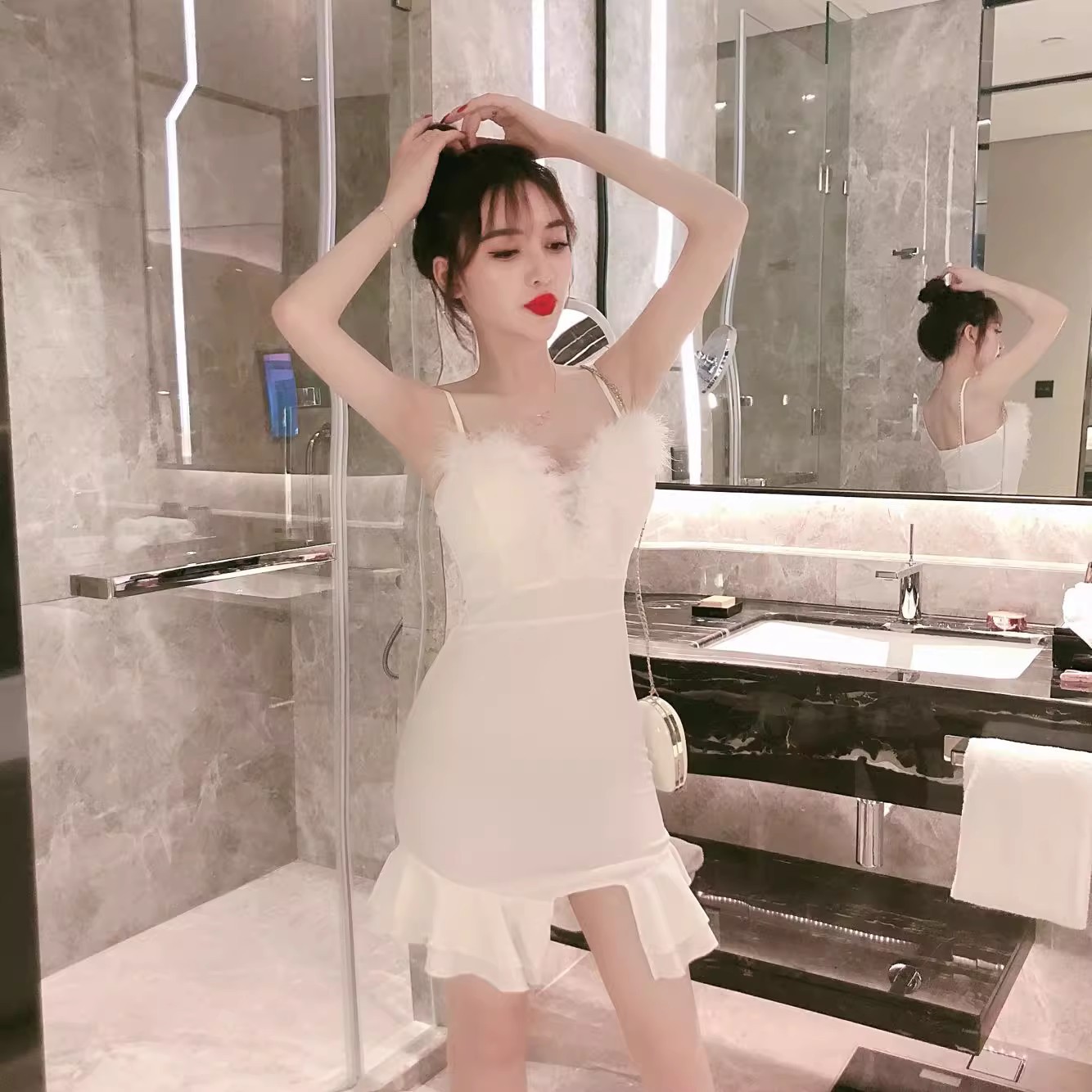 Increase quantity for JR01QJ Women's Sexy Low-cut Waisted Ruffled Hip-wrap Christmas Dress