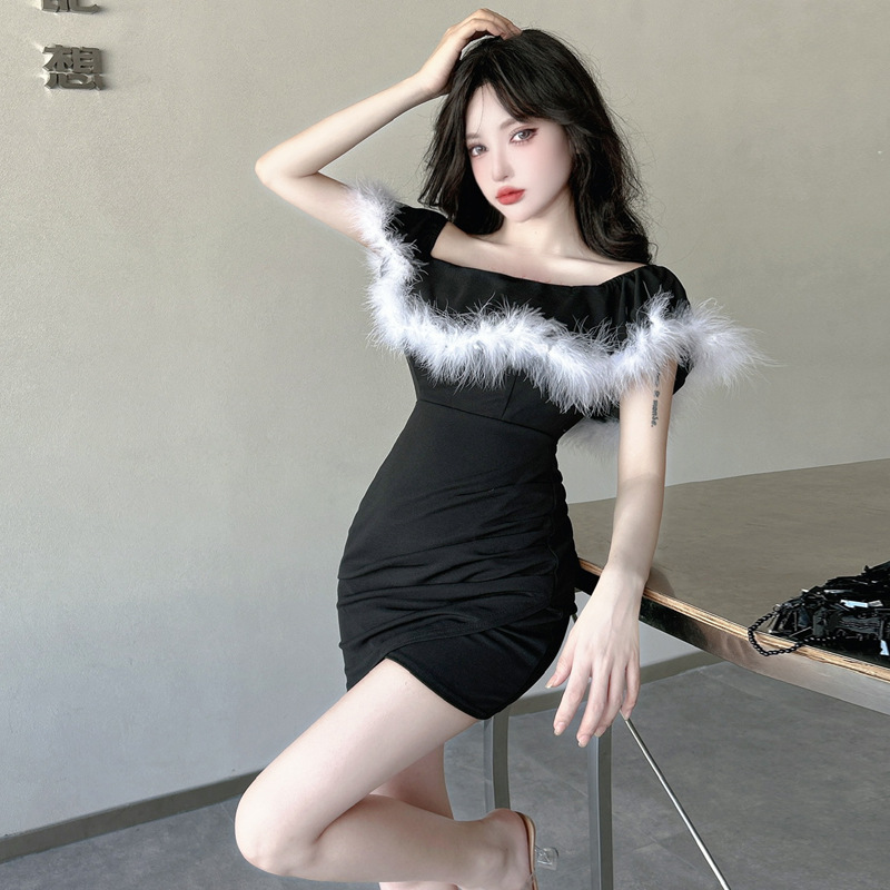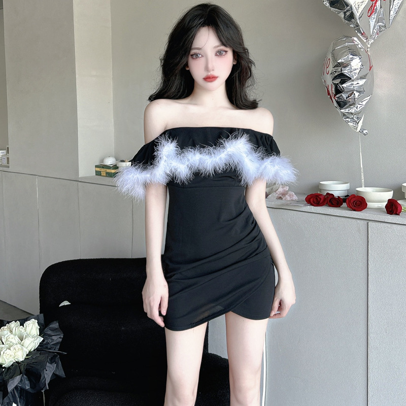 Increase quantity for JR01QJ Women's Sexy One-word Collar Open-shoulder Waist Hip Christmas Dress