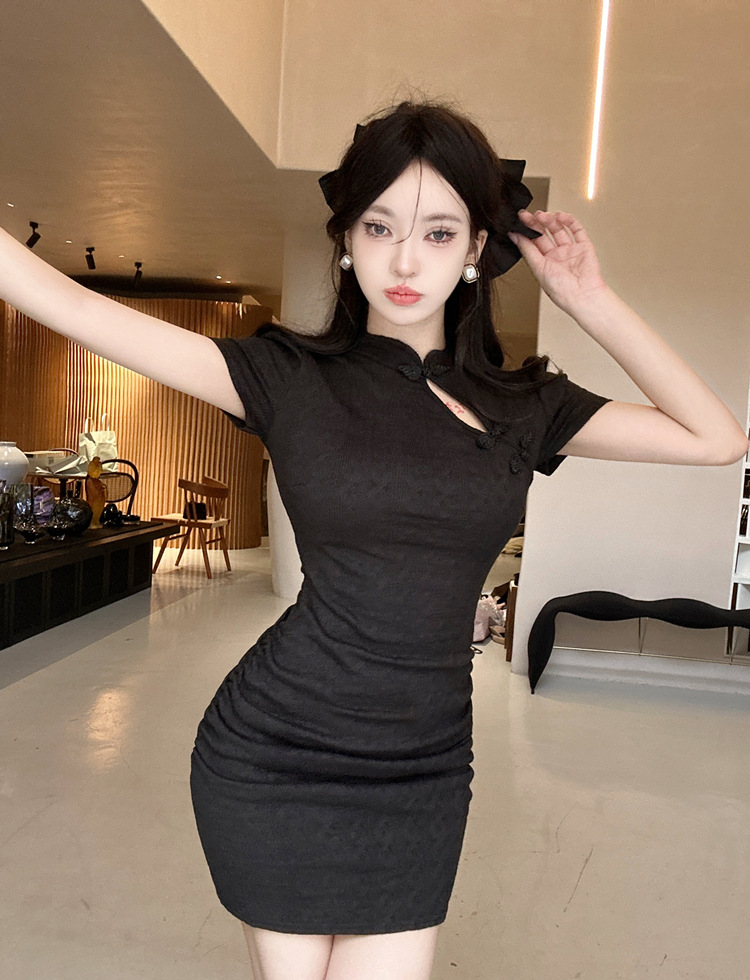 JR01QJ Women's Spice Girl Vintage Hollow Improved Cheongsam Tight Waist Hip Dress
