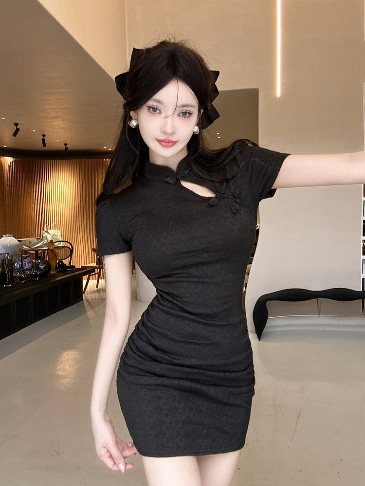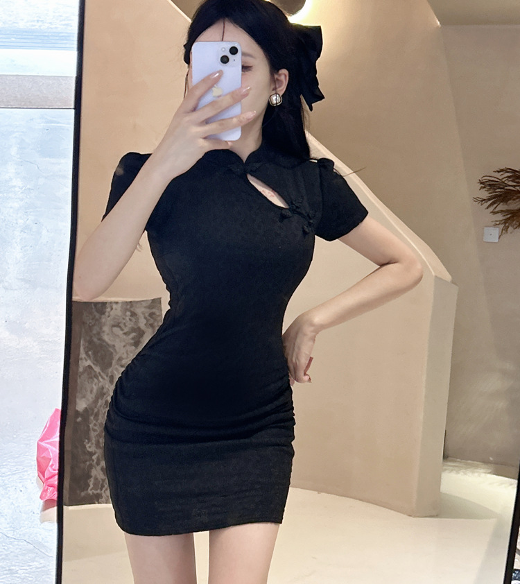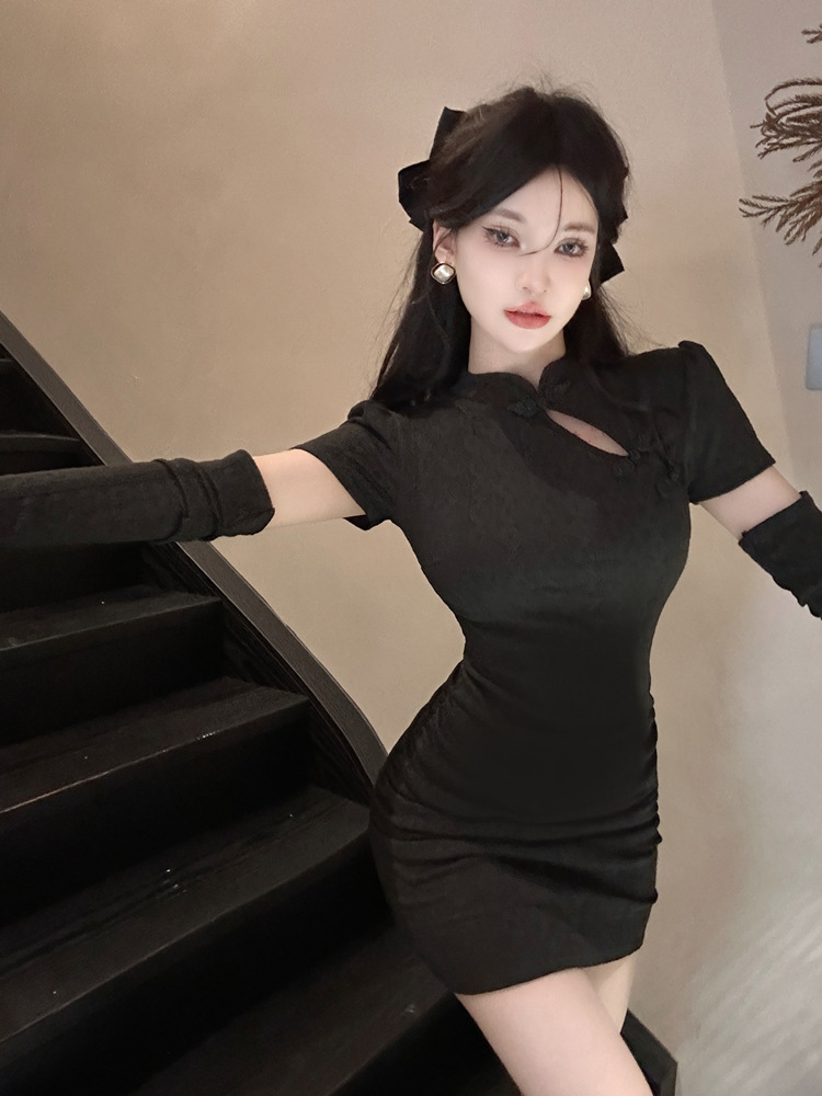 Increase quantity for JR01QJ Women's Spice Girl Vintage Hollow Improved Cheongsam Tight Waist Hip Dress