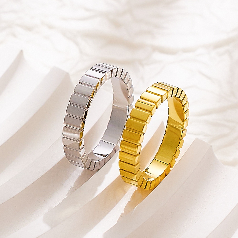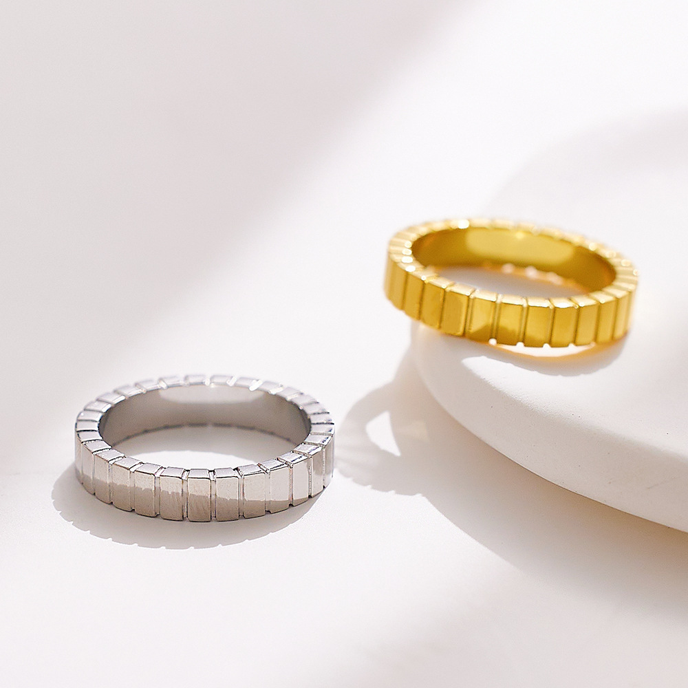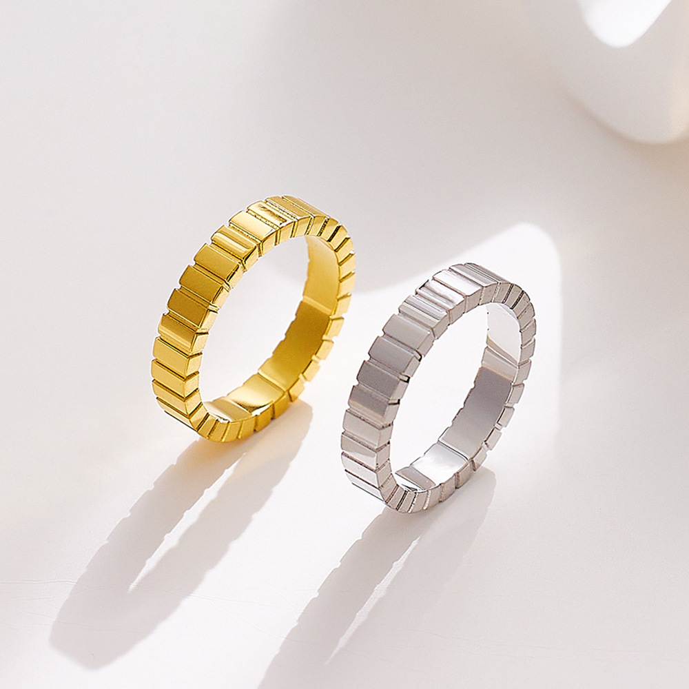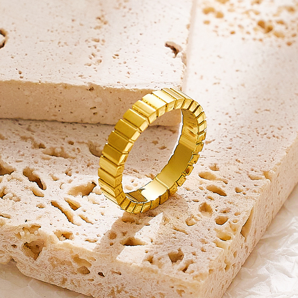 JY02FF Light Luxury Chocolate Pattern Stainless Steel Ring Titanium Steel Gold Square Pattern Ring For Women (Material: titanium steel)