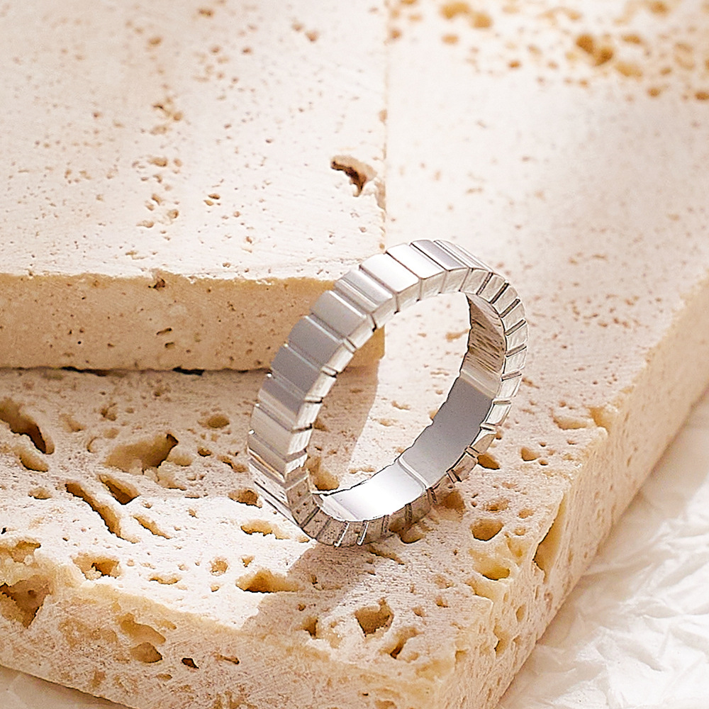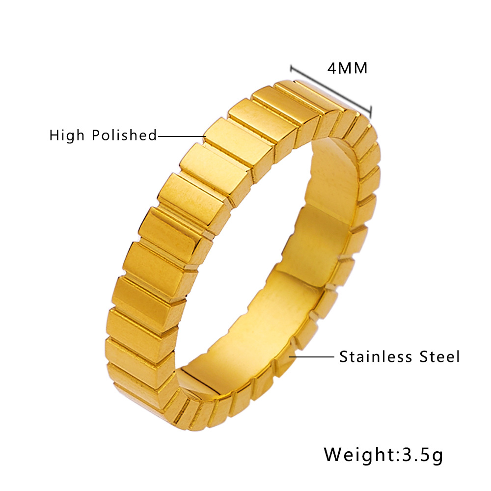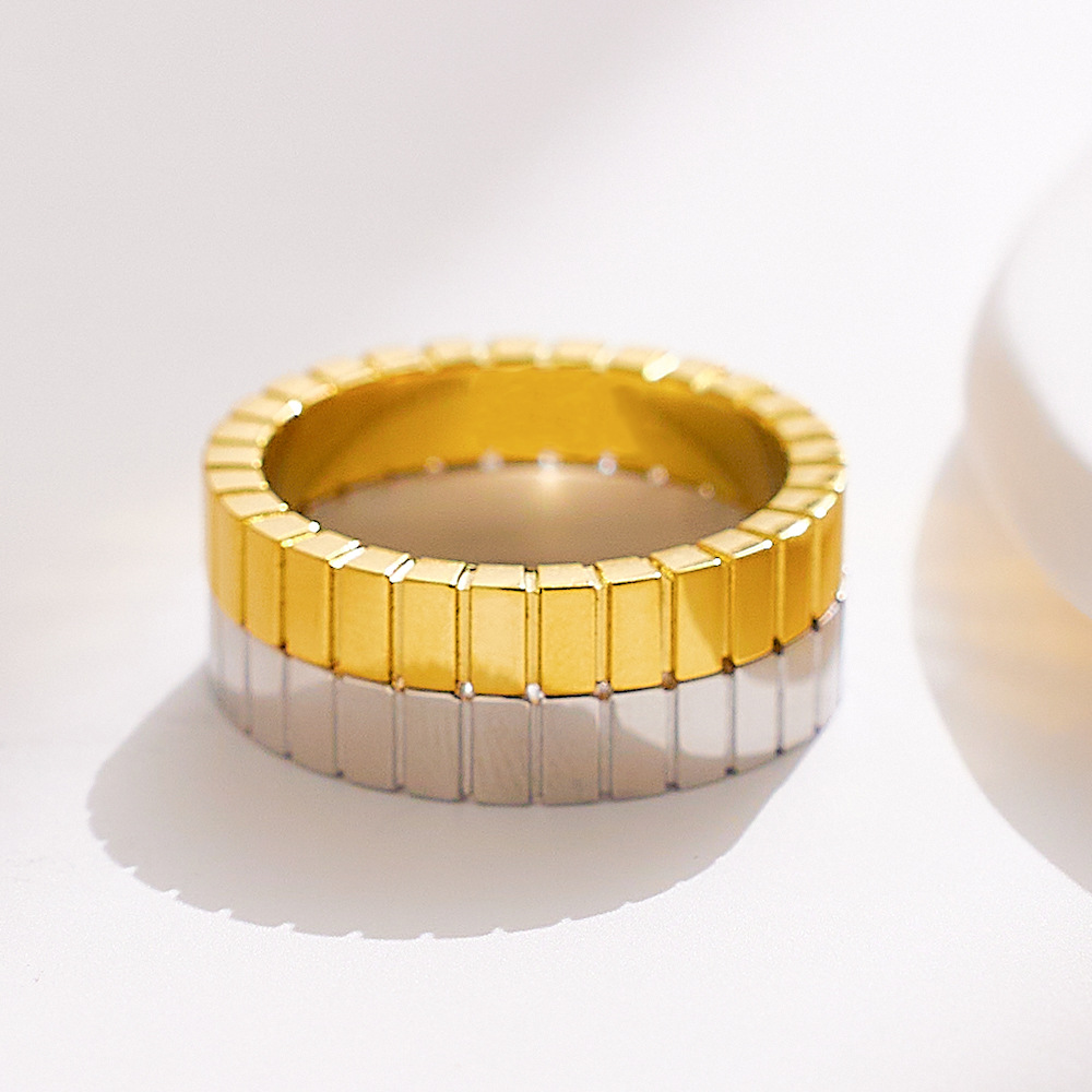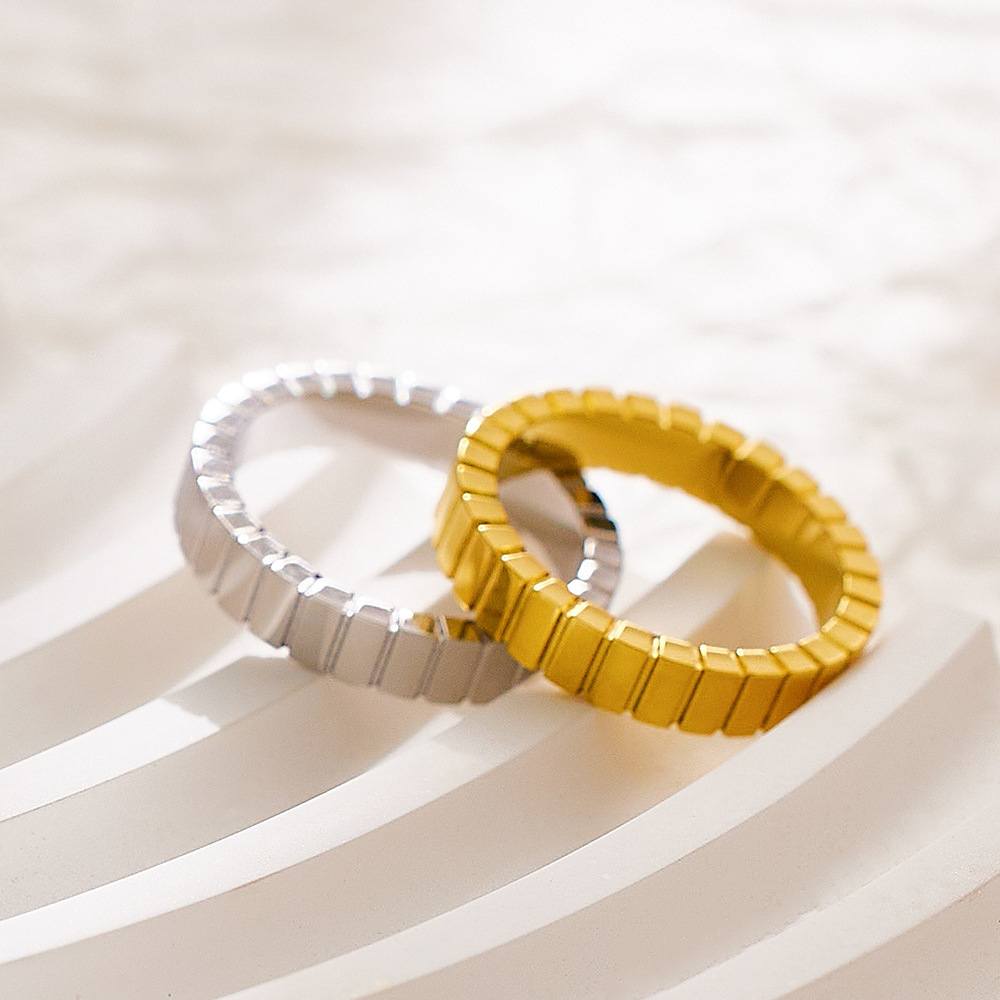 JY02FF Light Luxury Chocolate Pattern Stainless Steel Ring Titanium Steel Gold Square Pattern Ring For Women (Material: titanium steel)