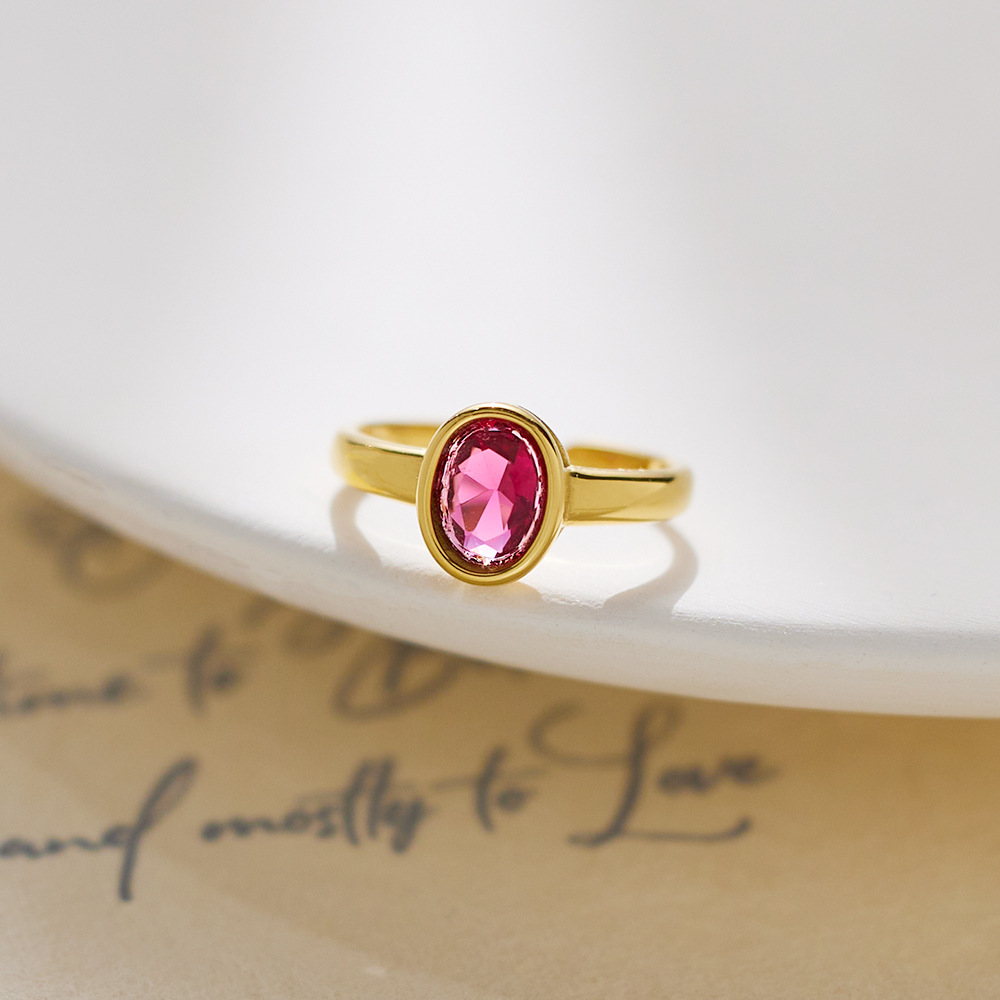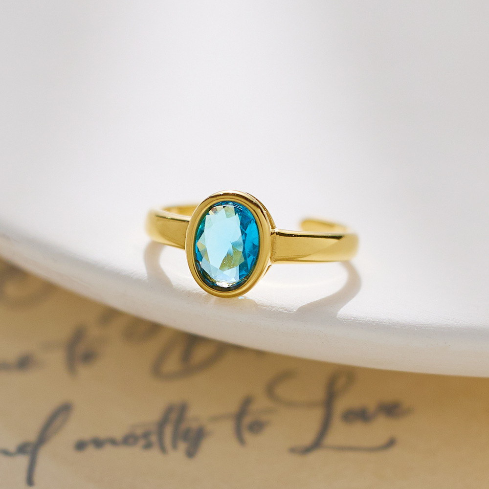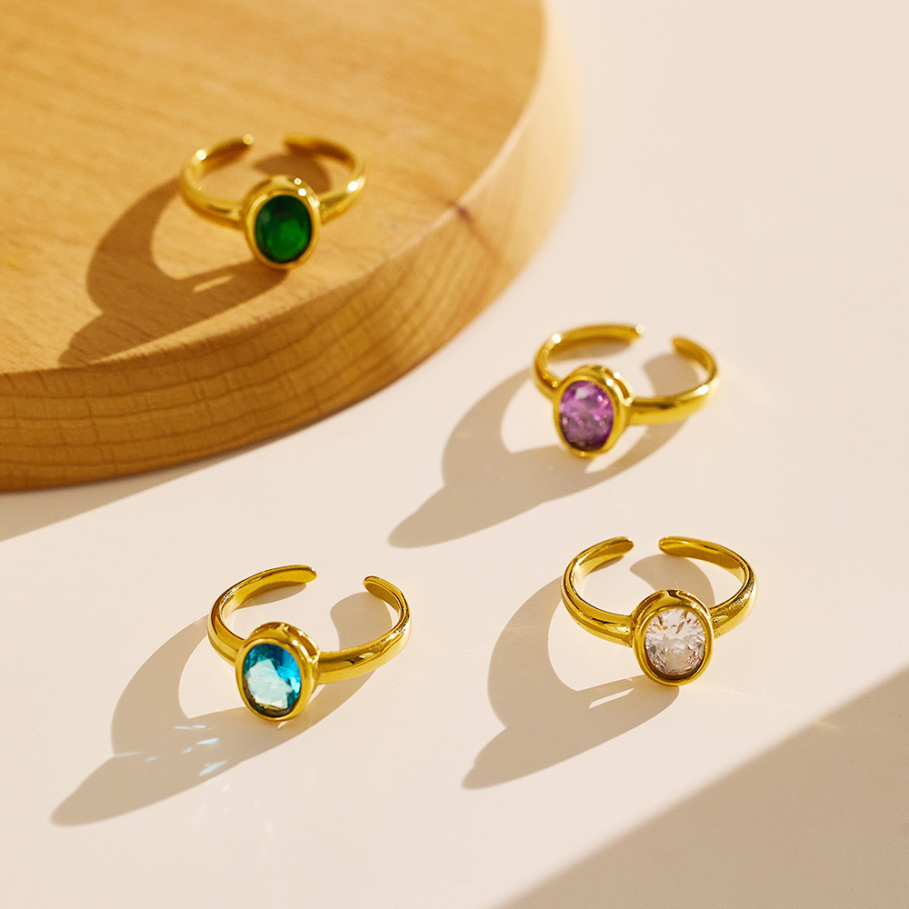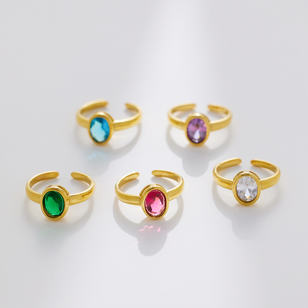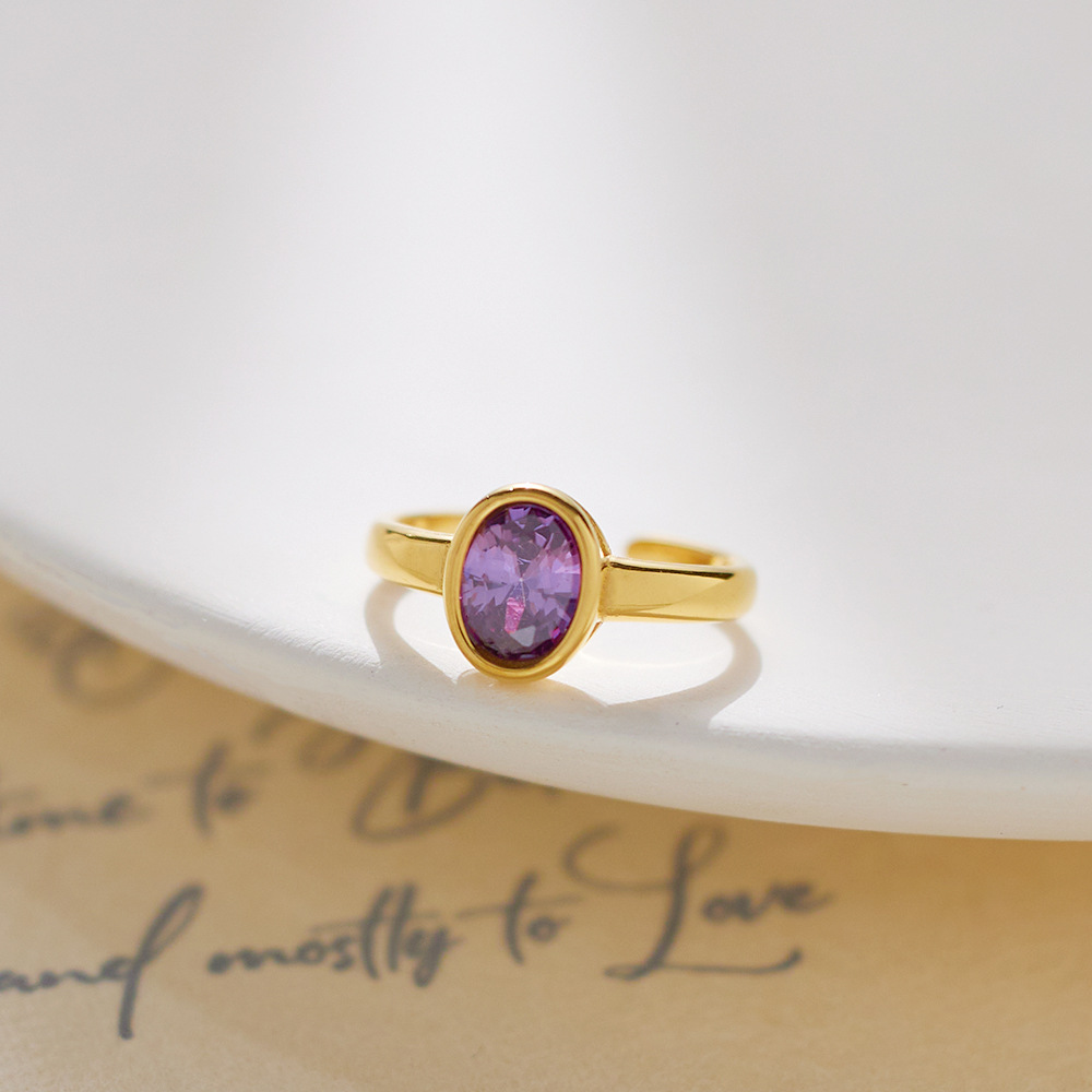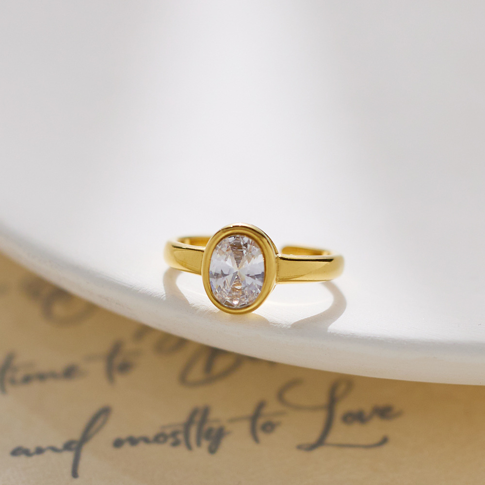 Decrease quantity for JY02FF Oval Diamond-encrusted Stainless Steel Ring European And American Retro INS Wind Titanium Steel Color Diamond Ring (Material: titanium steel)