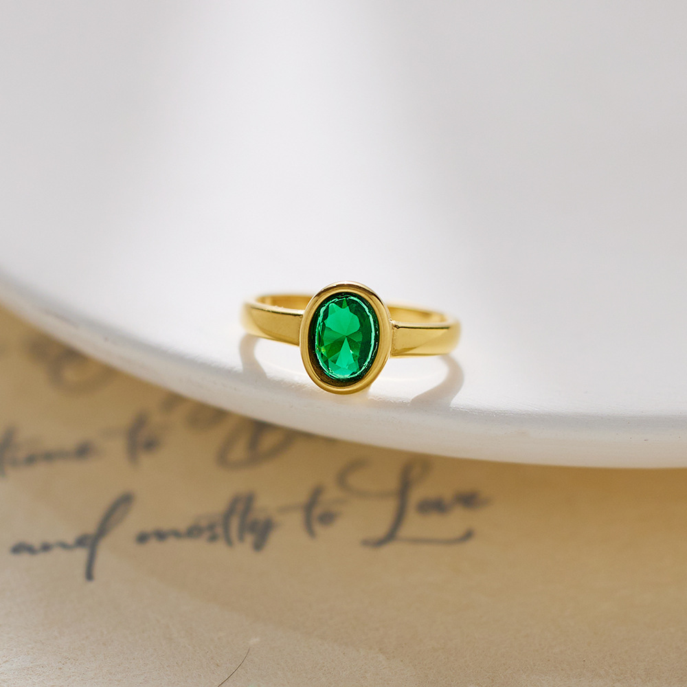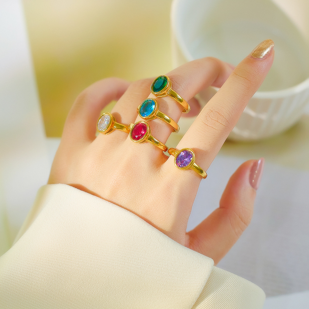JY02FF Oval Diamond-encrusted Stainless Steel Ring European And American Retro INS Wind Titanium Steel Color Diamond Ring (Material: titanium steel)