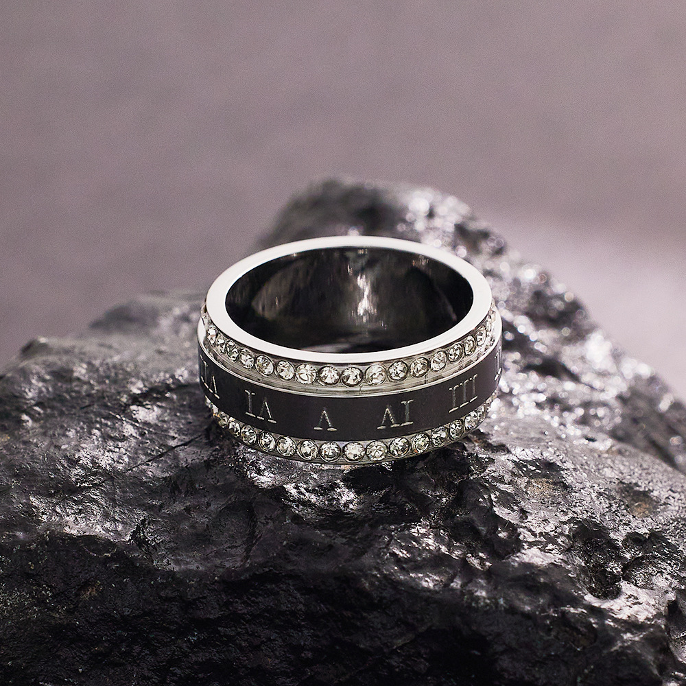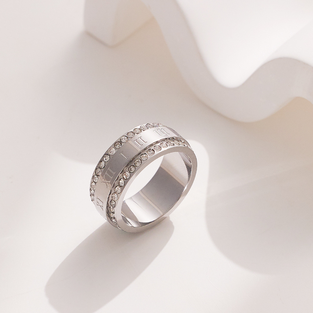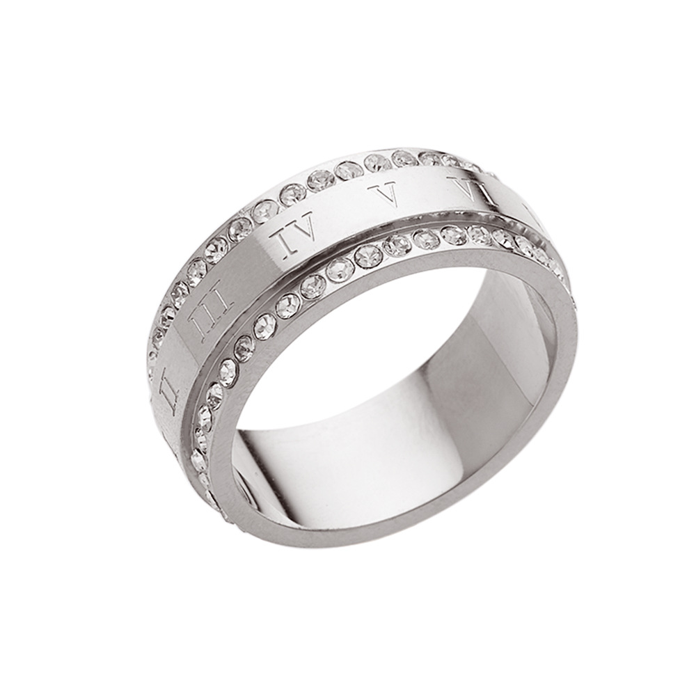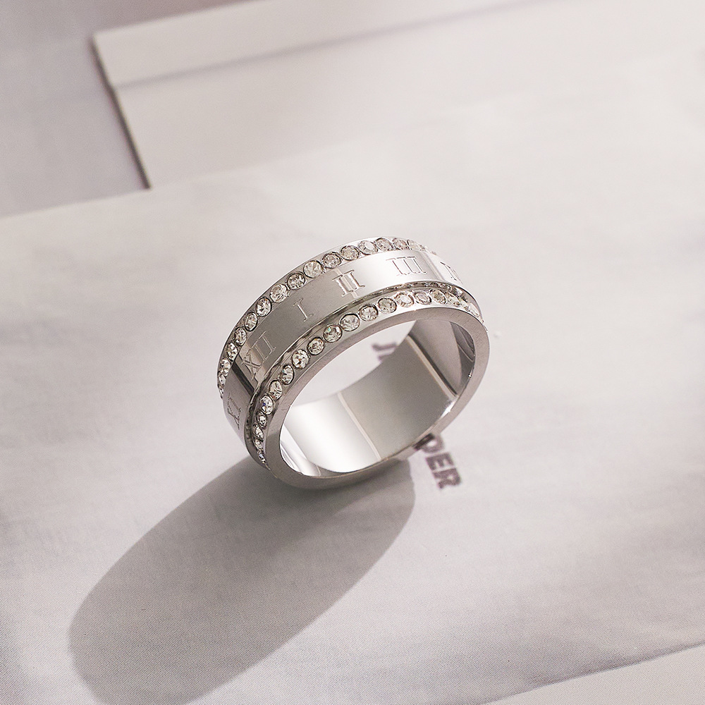 JY02FF Personality Fashion Double Row Full Diamond Index Finger Ring Fashion Couple Ring Two Row Diamond Titanium Steel Ring (Material: titanium steel)