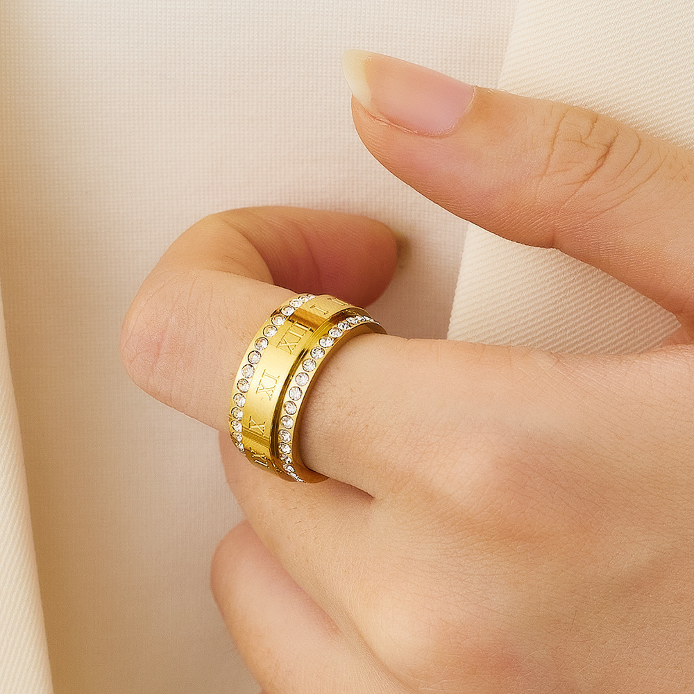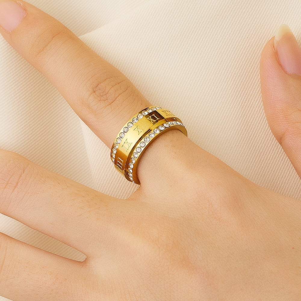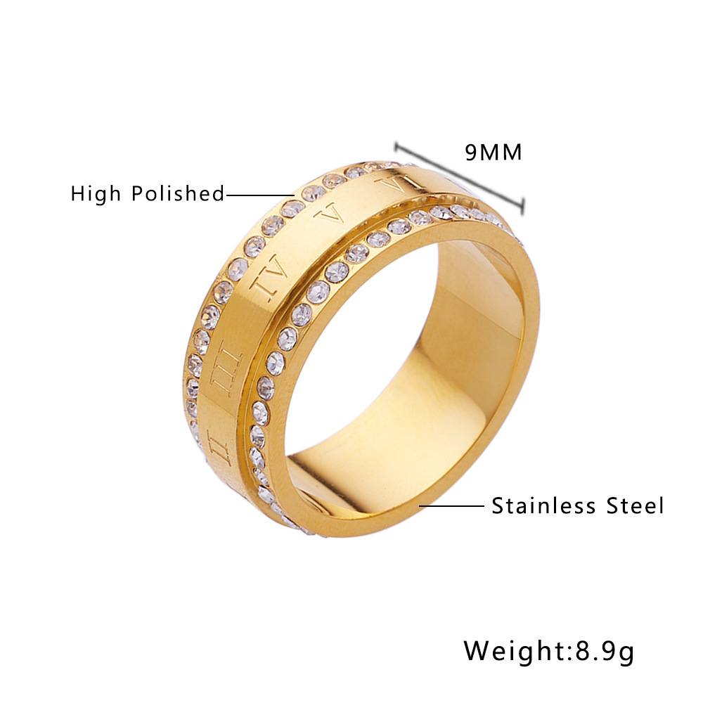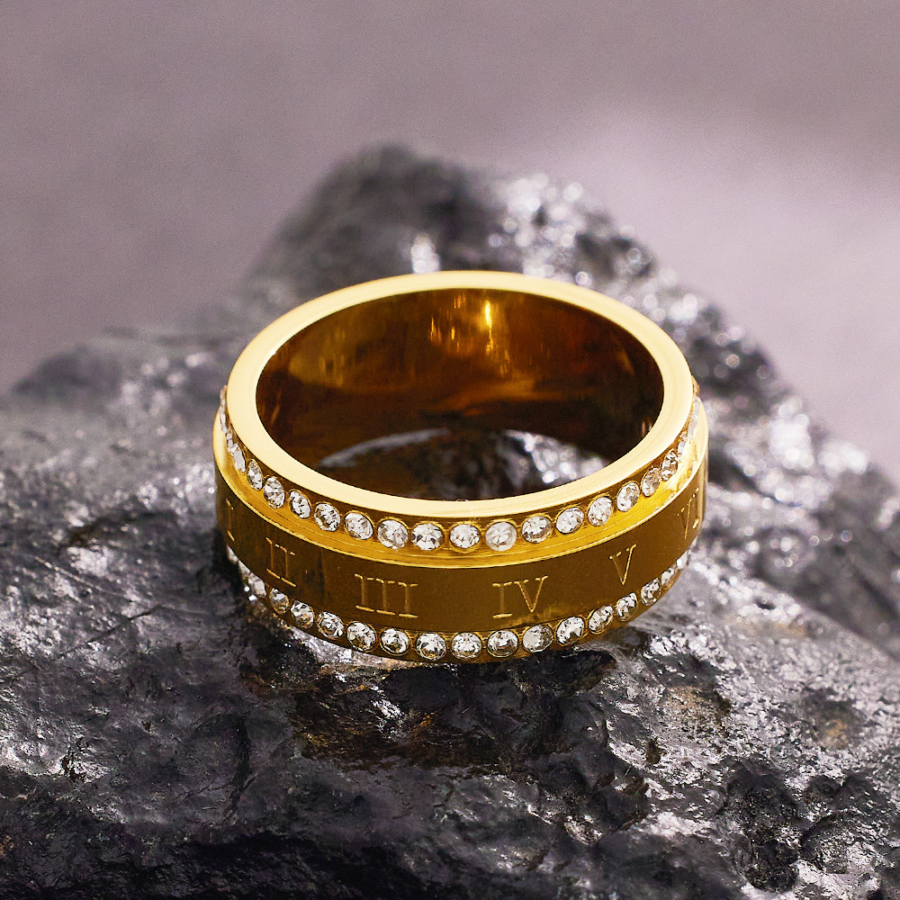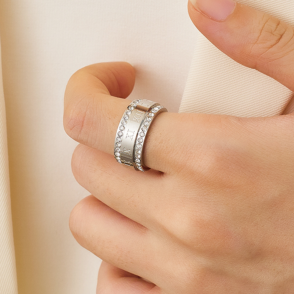 JY02FF Personality Fashion Double Row Full Diamond Index Finger Ring Fashion Couple Ring Two Row Diamond Titanium Steel Ring (Material: titanium steel)
