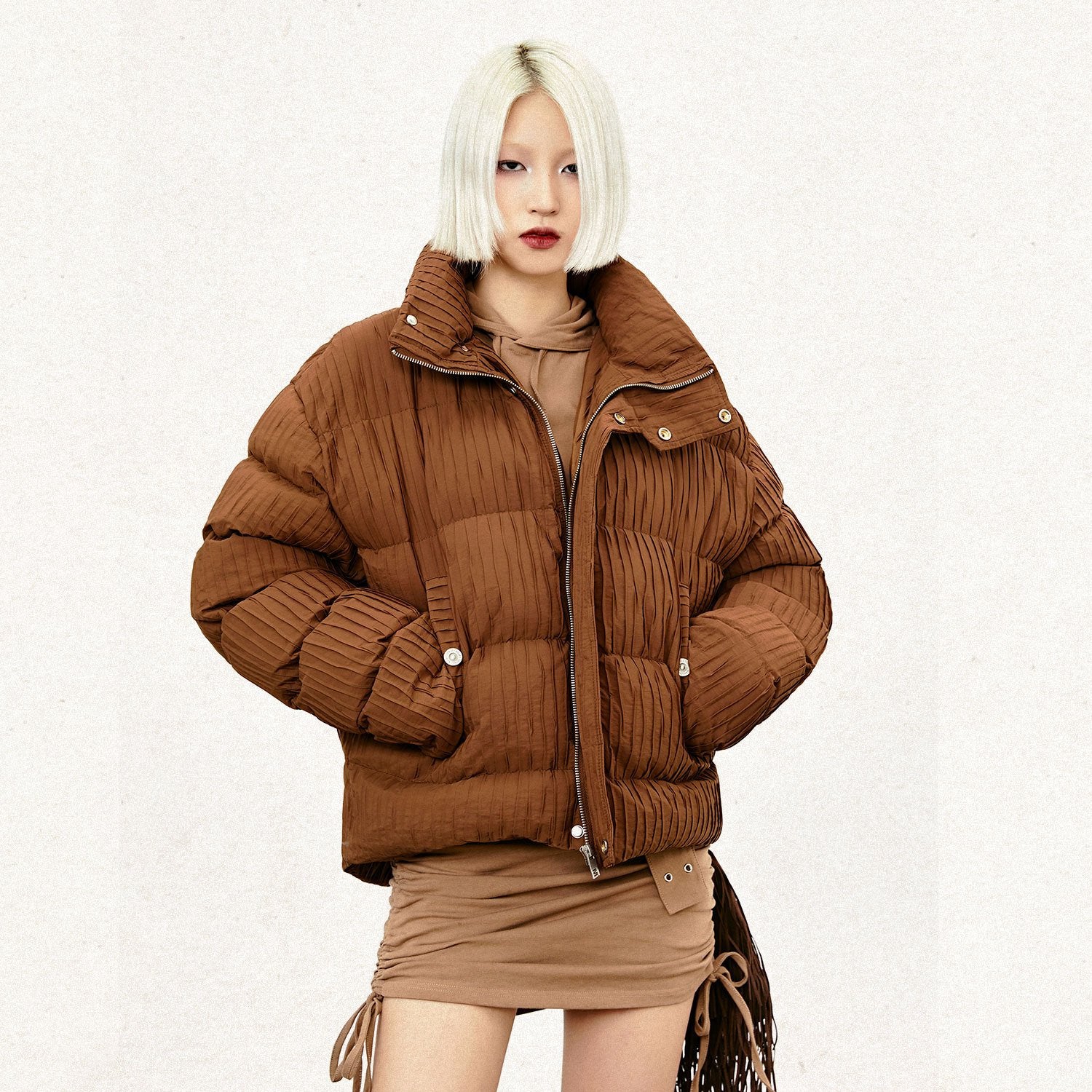 MADEEXTREME Autumn And Winter High-end Niche Pleated Short Wide High Collar Warm Thickened Cotton-padded Jacket For Men And Women