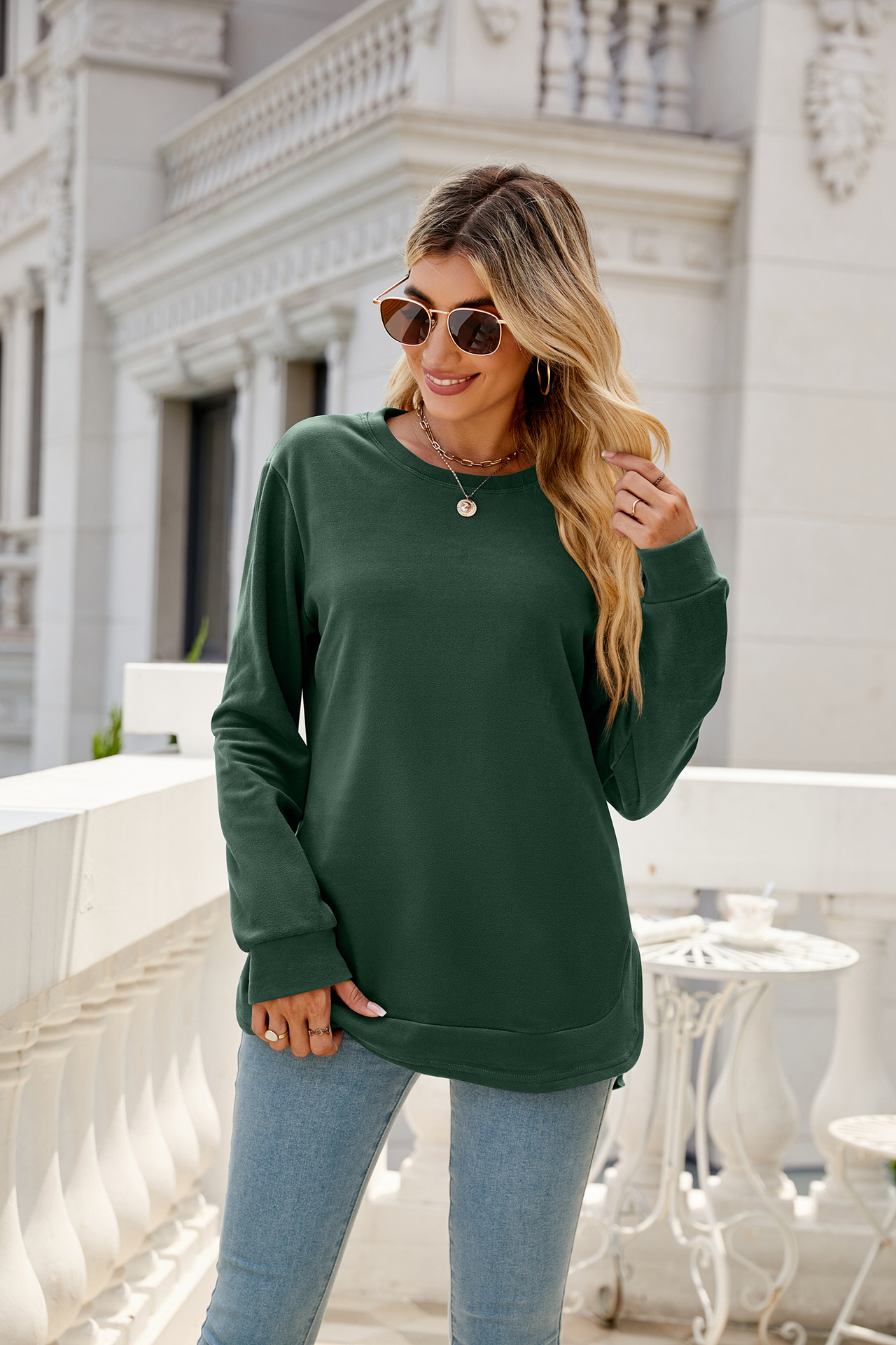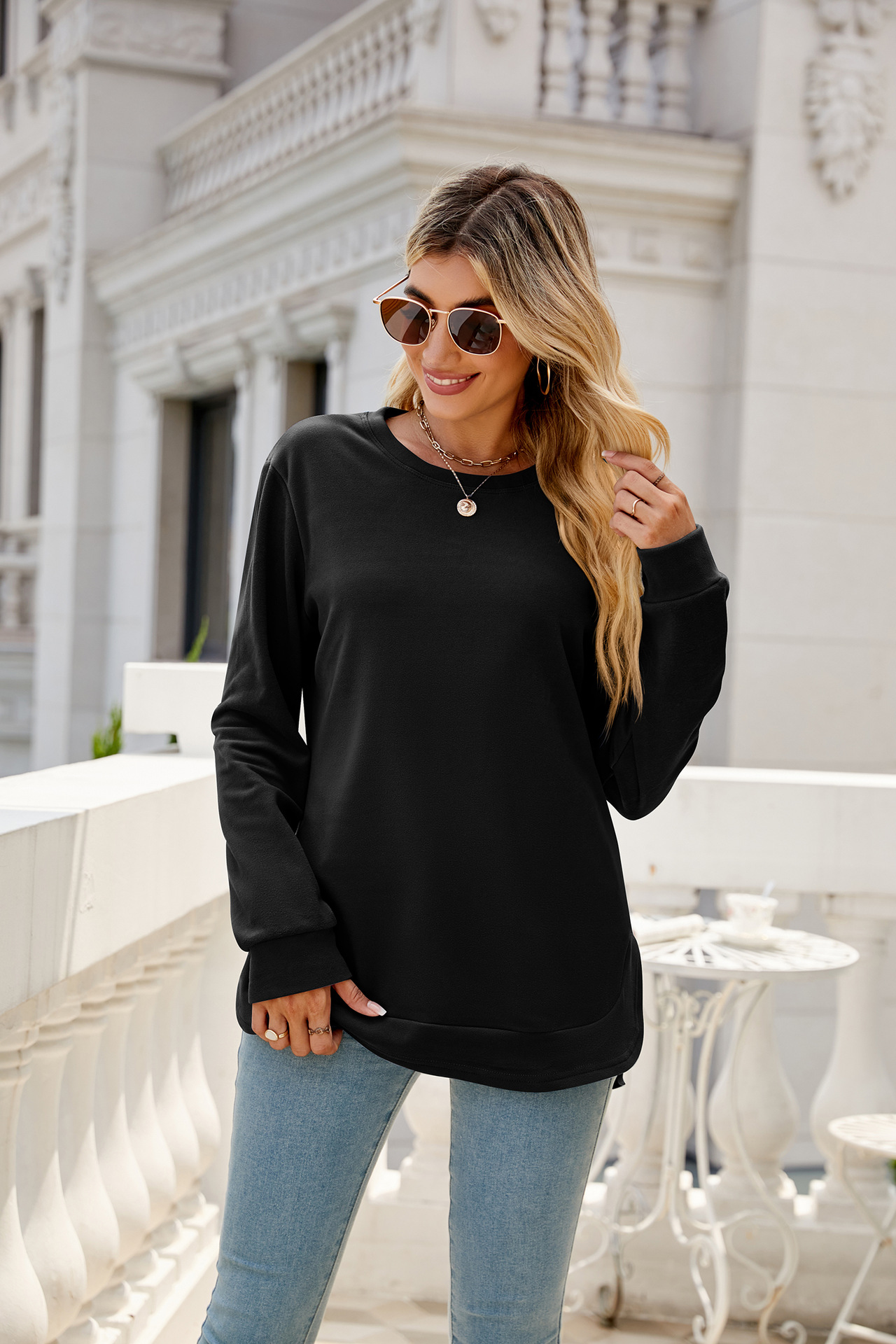 Decrease quantity for AB09HL Cross-border European And American Women's Clothing Amazon Autumn And Winter New Round Neck Irregular Hem Long Sleeve T-shirt Loose Casual Top