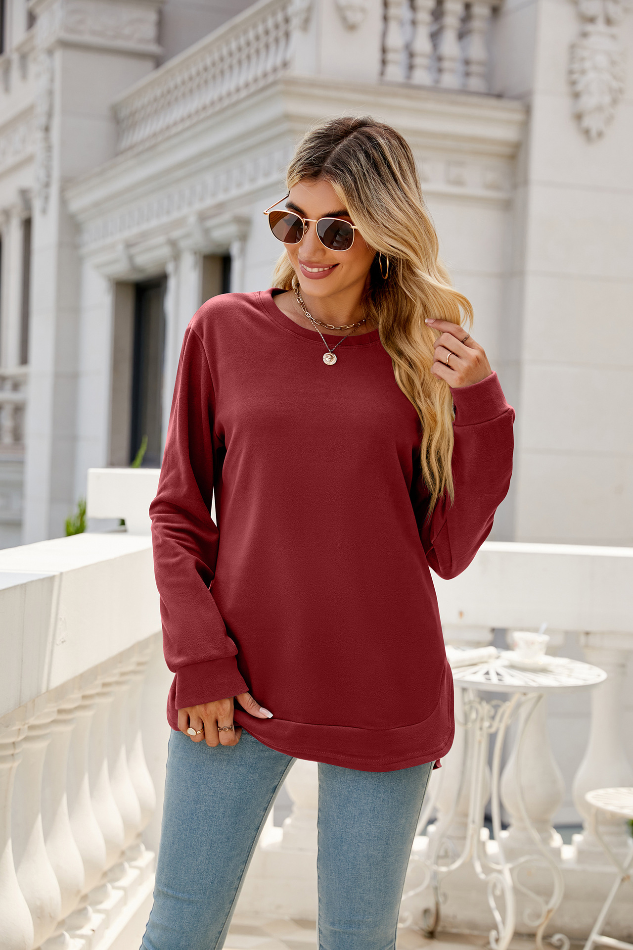 AB09HL Cross-border European And American Women's Clothing Amazon Autumn And Winter New Round Neck Irregular Hem Long Sleeve T-shirt Loose Casual Top