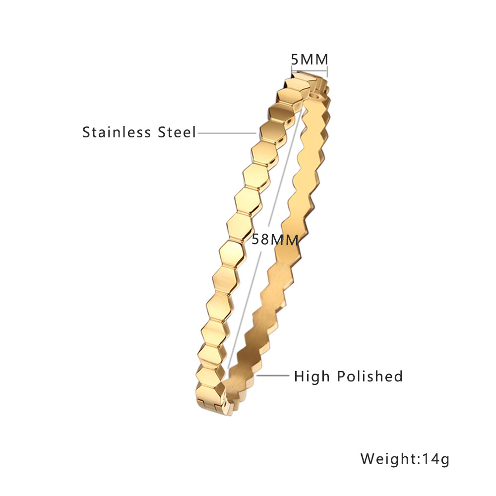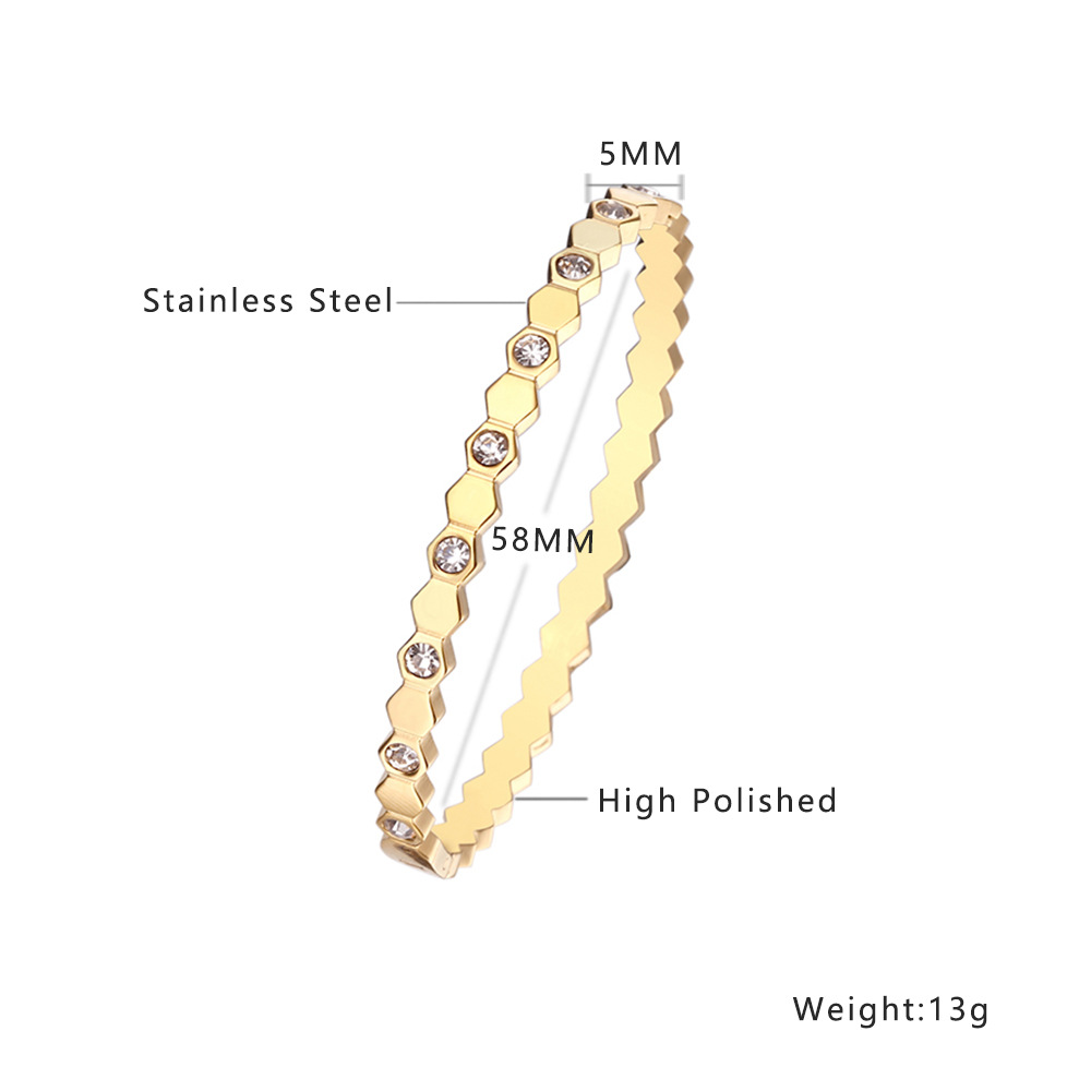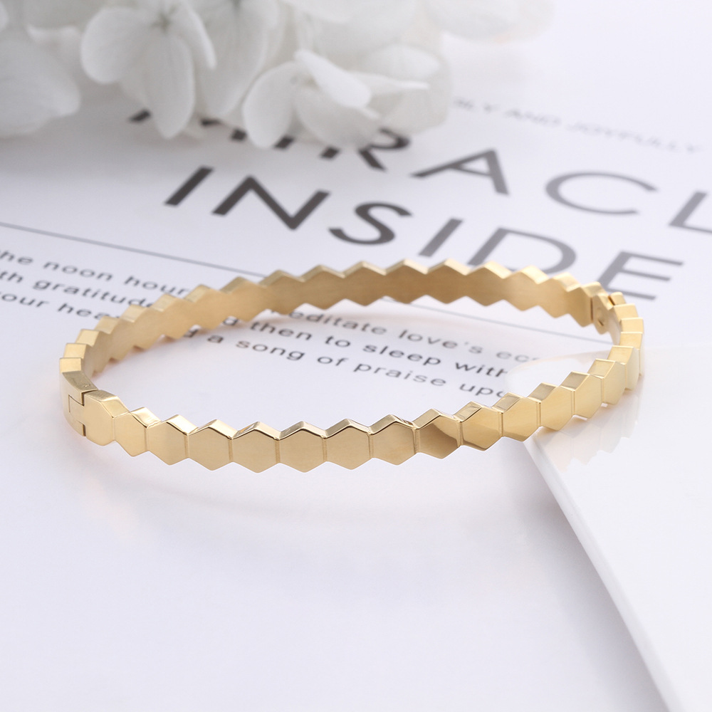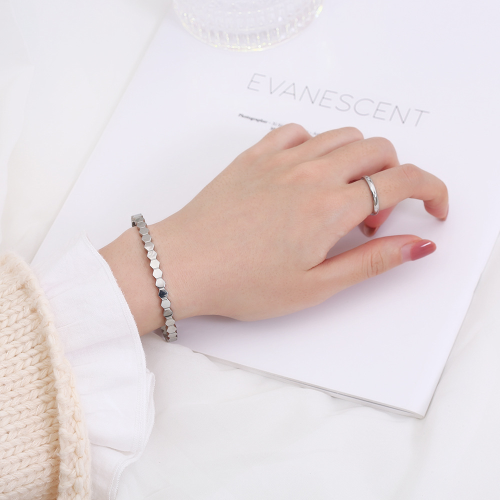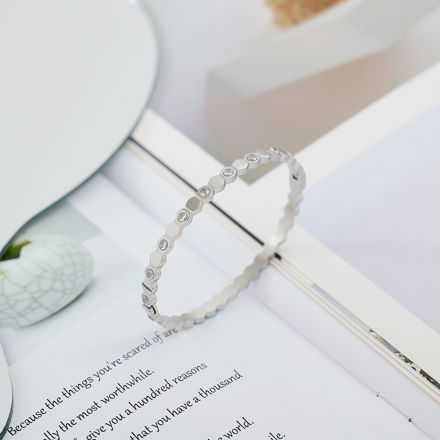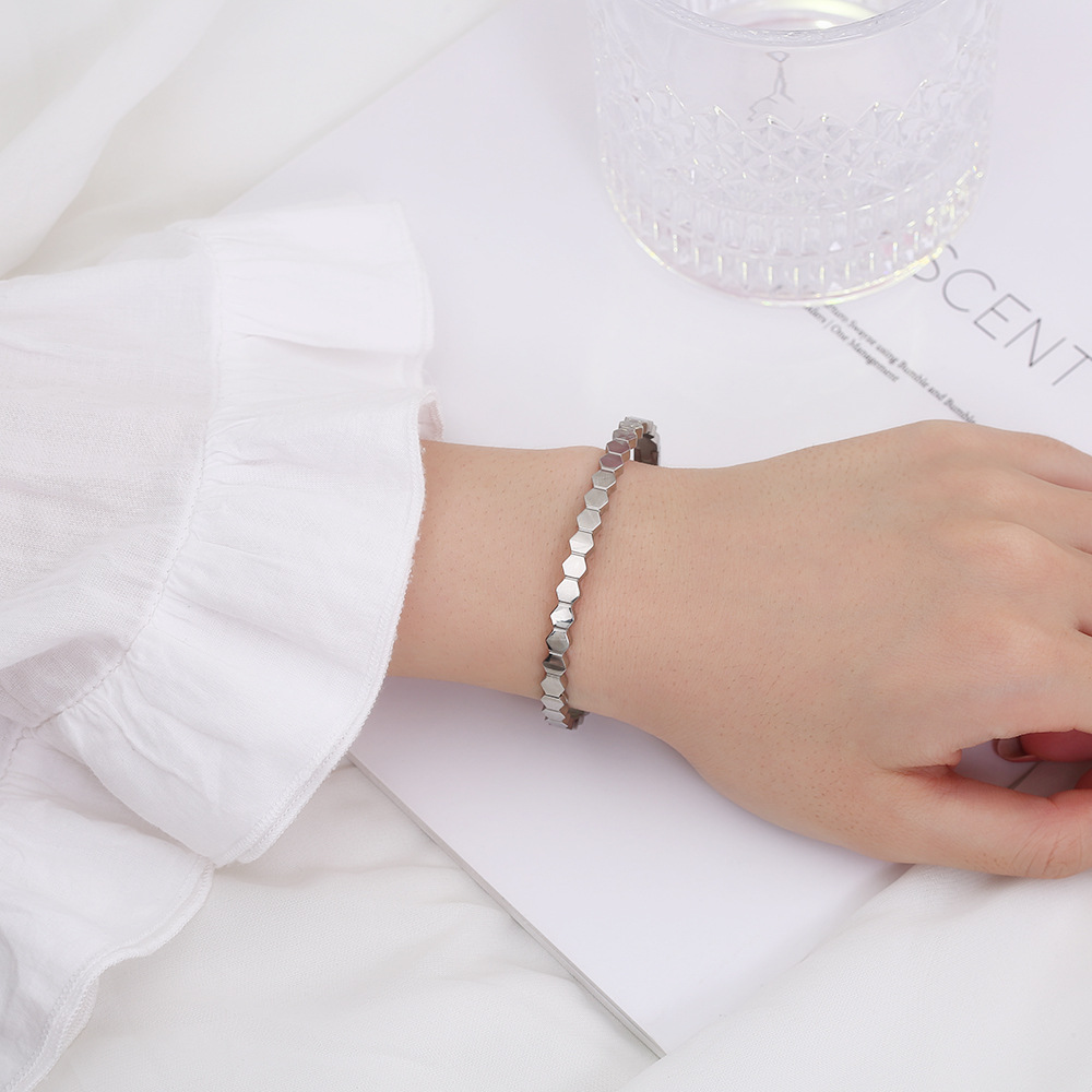 JY02FF Fashion Titanium Steel Women's Jewelry Korean Couple's Zircon Bracelet Titanium Steel Hexagonal Honeycomb Bracelet (Material: titanium steel)