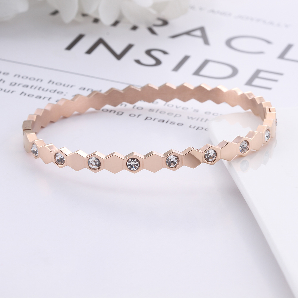 Verringere die Menge für JY02FF Fashion Titanium Steel Women's Jewelry Korean Couple's Zircon Bracelet Titanium Steel Hexagonal Honeycomb Bracelet (Material: titanium steel)