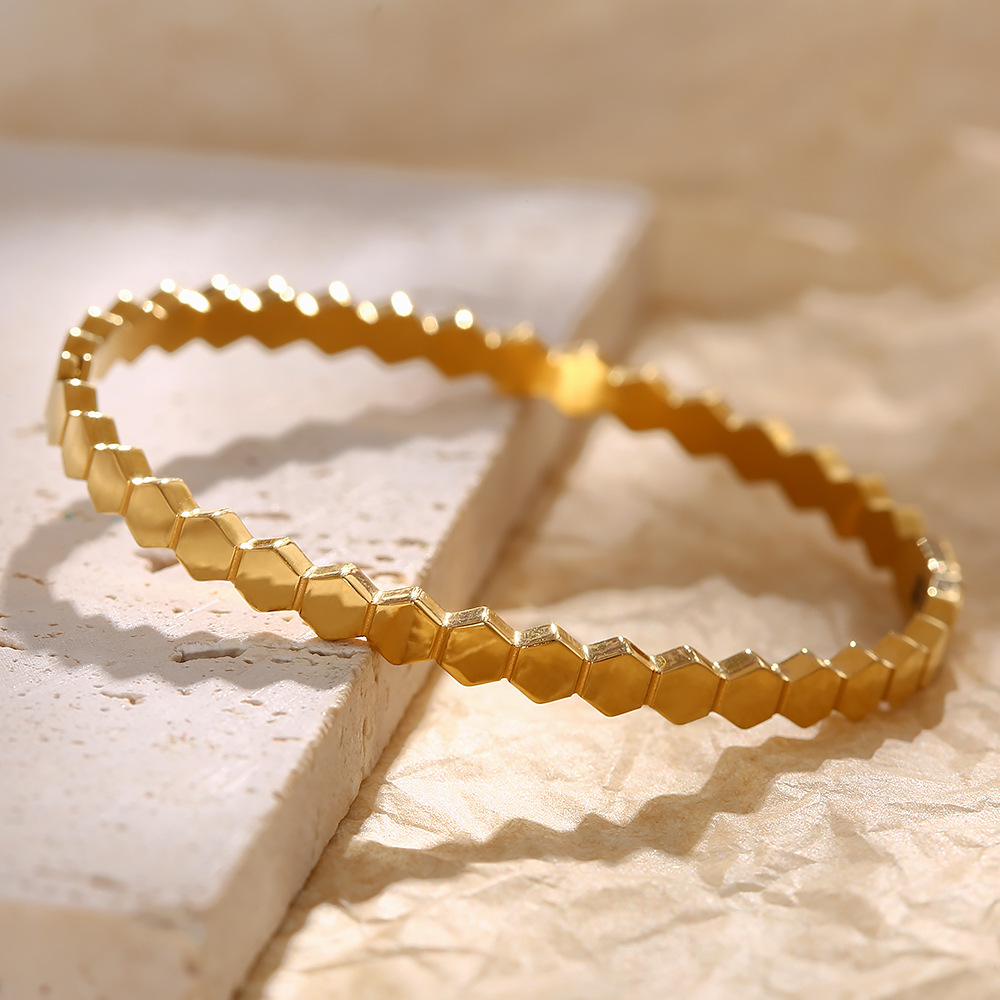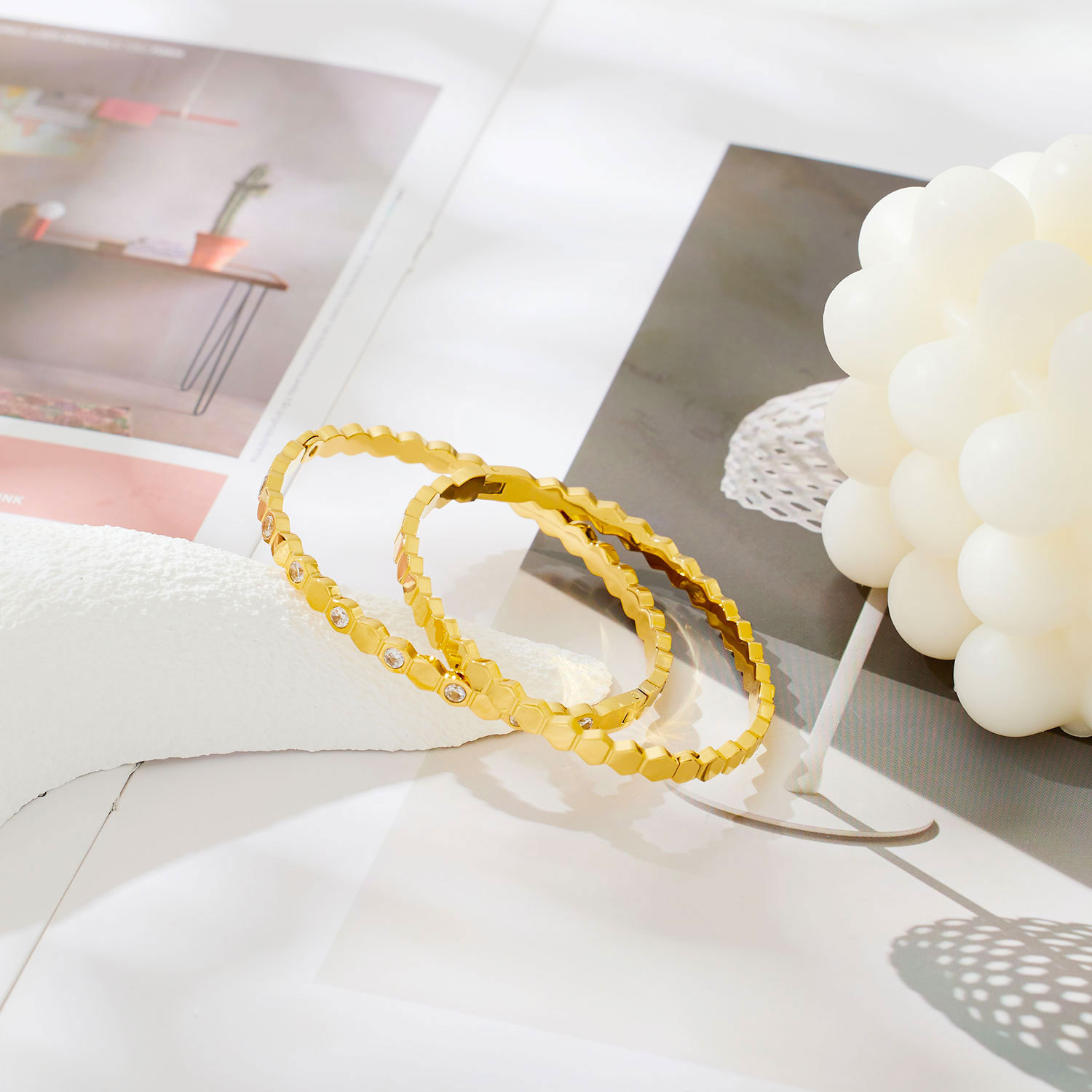 Erhöhe die Menge für JY02FF Fashion Titanium Steel Women's Jewelry Korean Couple's Zircon Bracelet Titanium Steel Hexagonal Honeycomb Bracelet (Material: titanium steel)