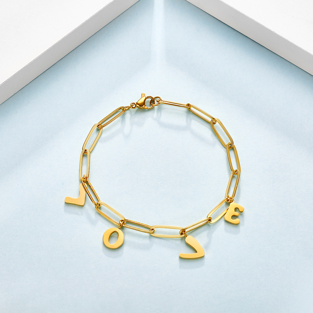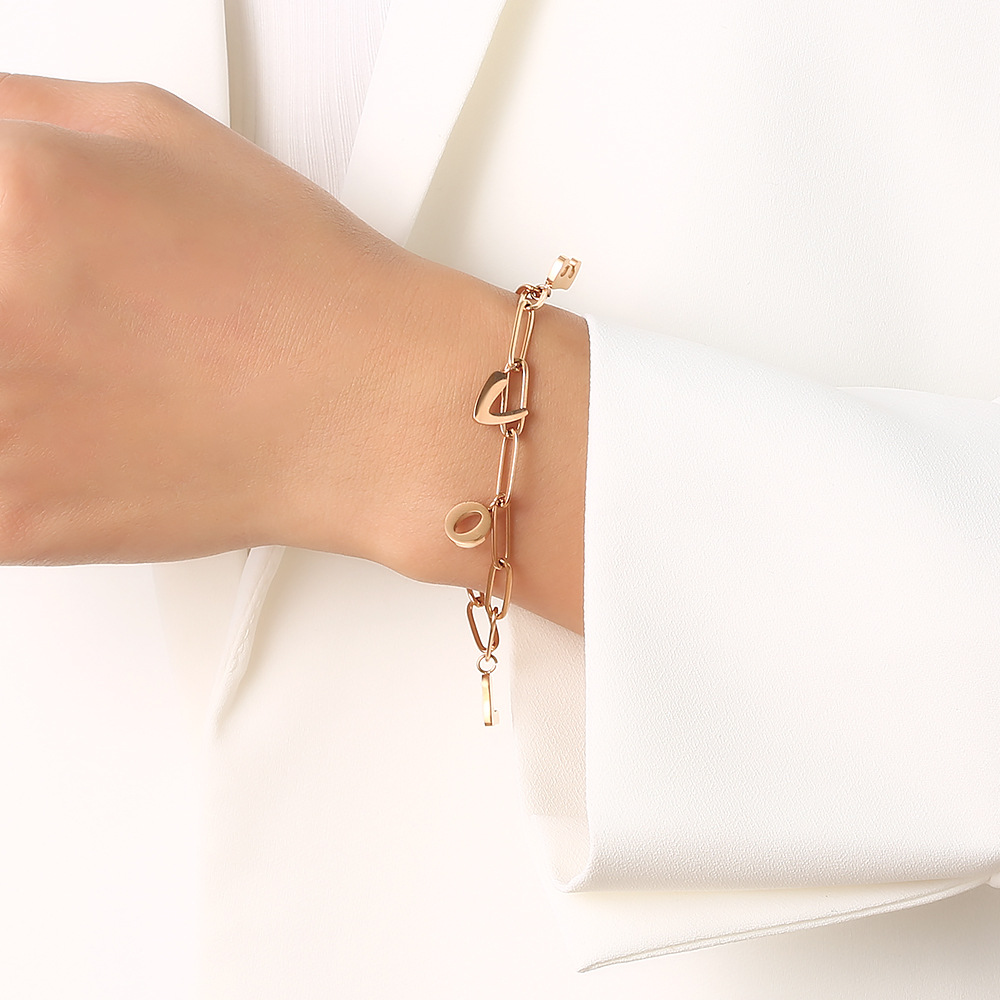 JY02F Jewelry Titanium Steel Love Letter Bracelet Personality Fashion Letter Titanium Steel Bracelet (Material: titanium steel)