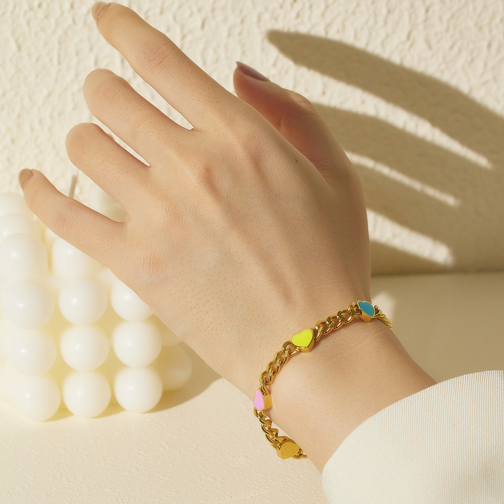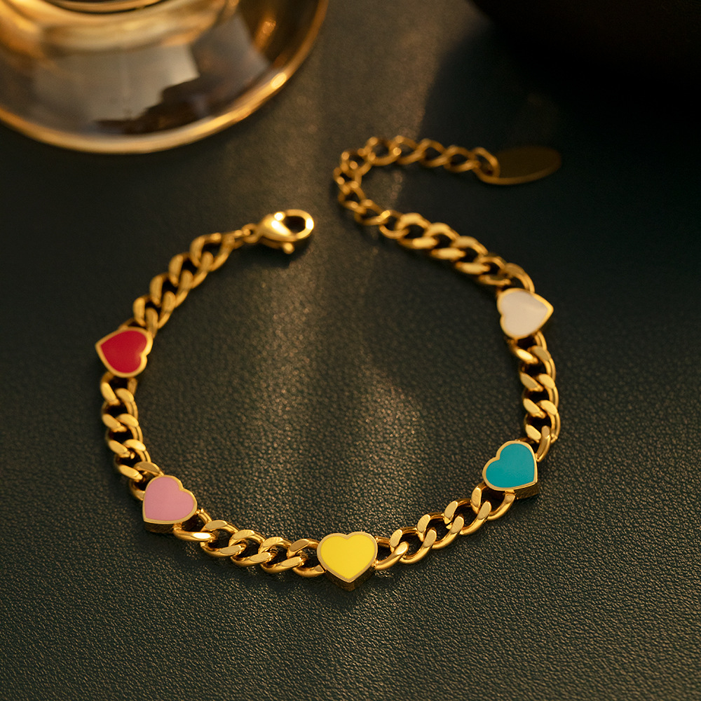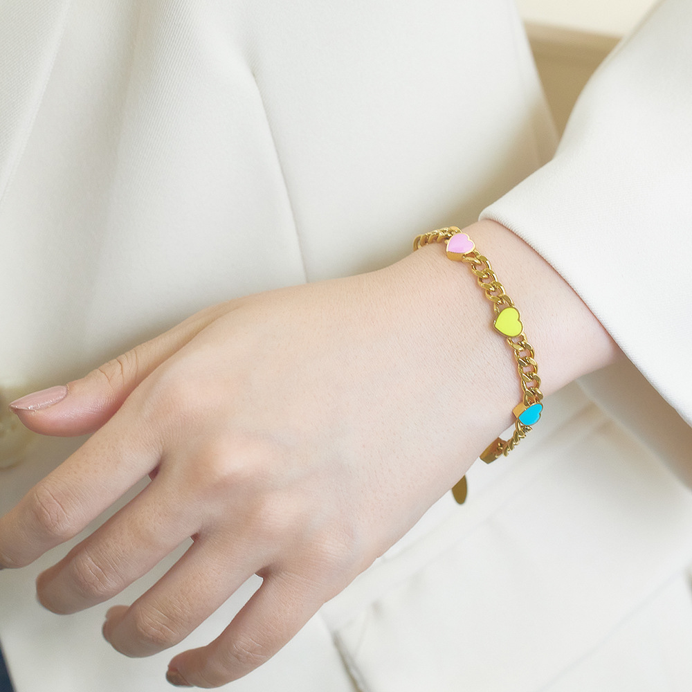 JY02FF Blogger With Color Enamel Love Bracelet European And American Niche Light Luxury Stainless Steel Heart Bracelet (Material: titanium steel)