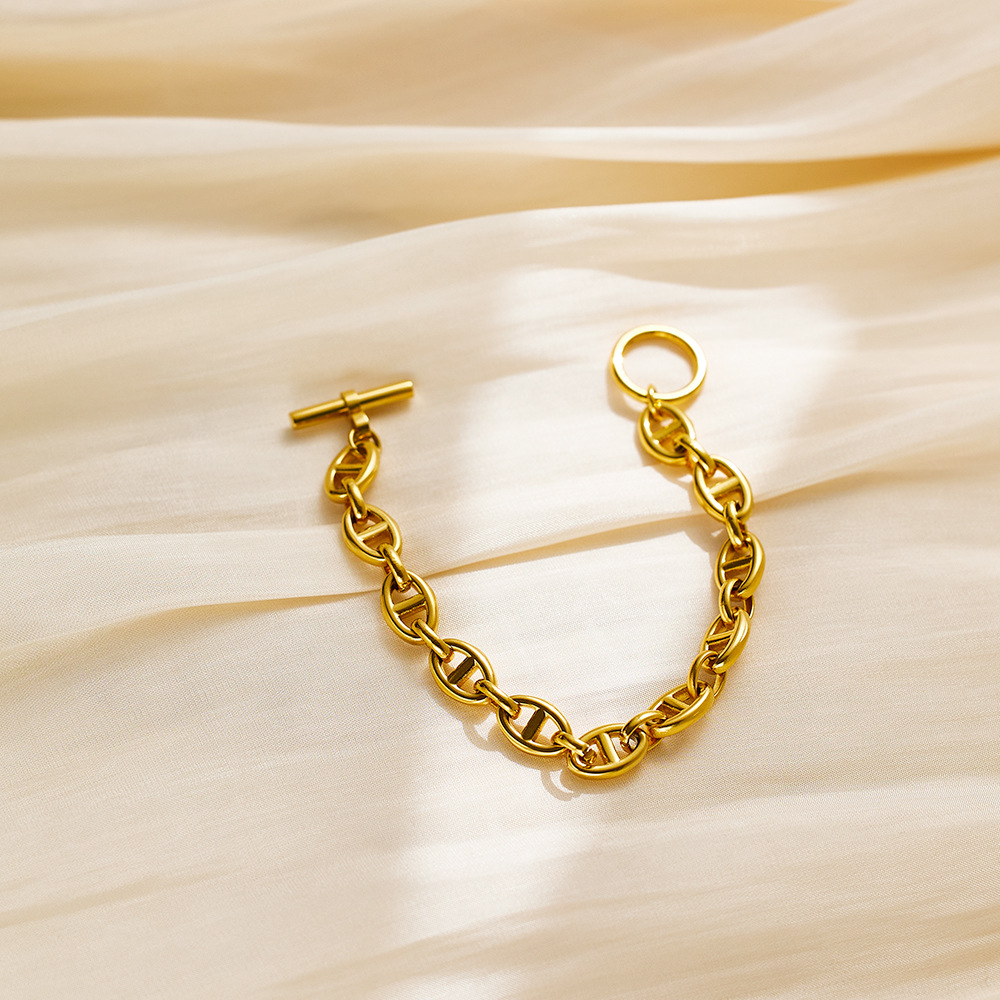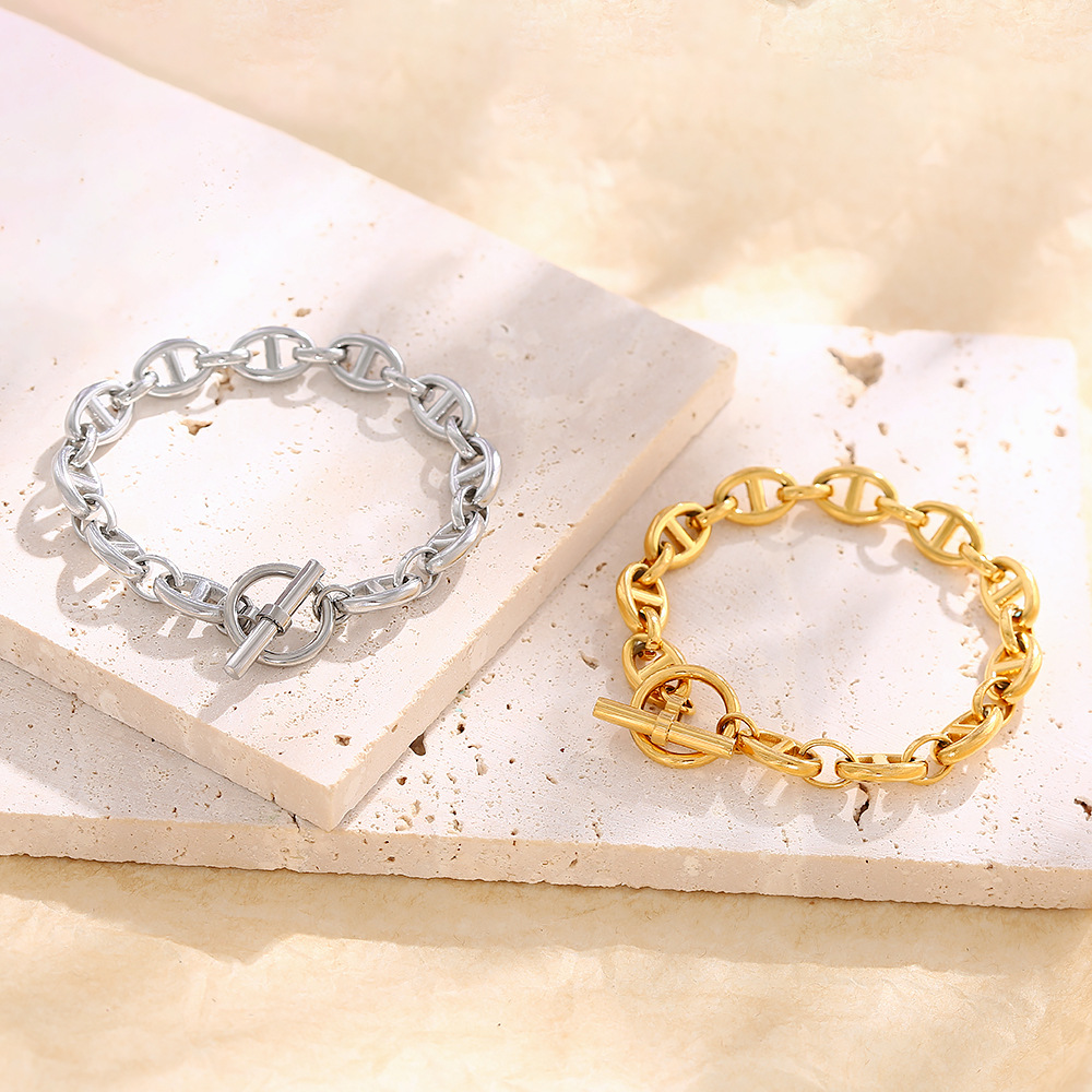 JY02FF Buckle Bracelet Women's Plated 18k Gold Chain Hip Hop Stainless Steel Ot Buckle Couple Bracelet (Material: titanium steel)