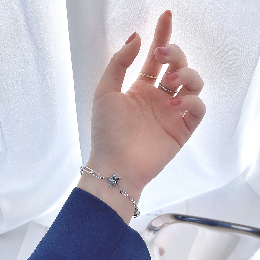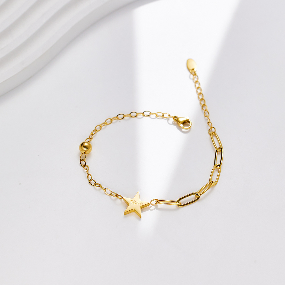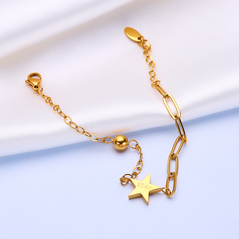 JY02FF Ins Style Niche High-end Sense Bracelet Plated 18k Gold Chain Bracelet Star Titanium Steel Bracelet Women's Jewelry (Material: titanium steel)
