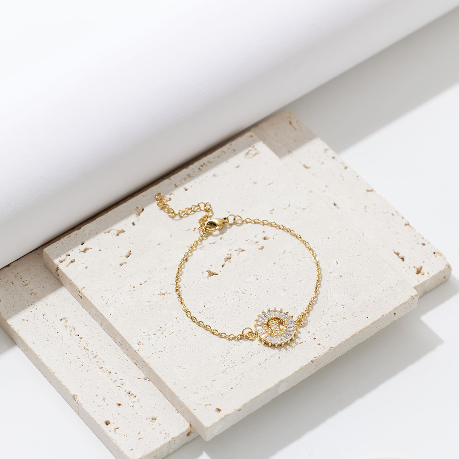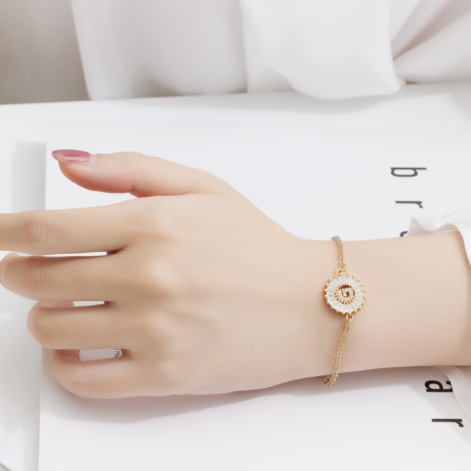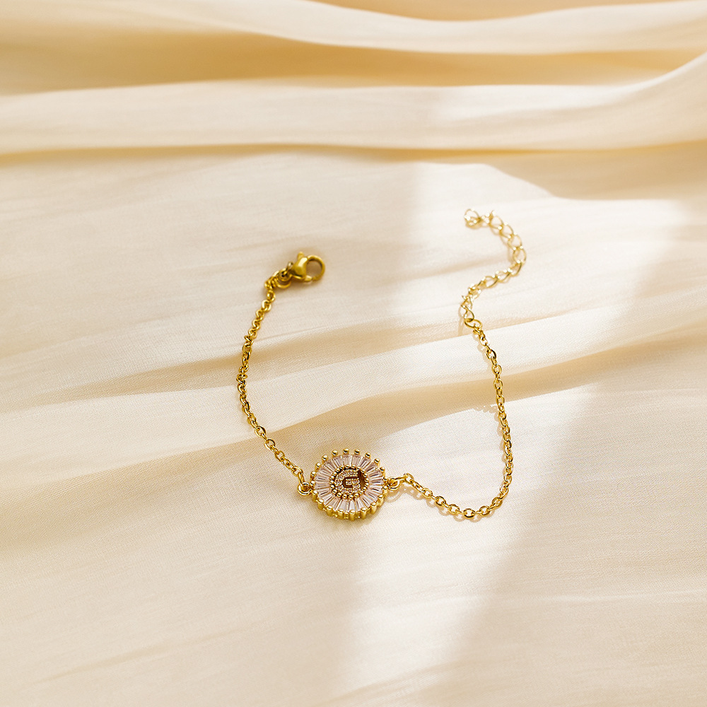 JY02FF Ins Vacuum Electroplated Bracelet Inlaid With Zircon Bracelet Simple Letter Adjustable Bracelet For Women (Material: titanium steel)