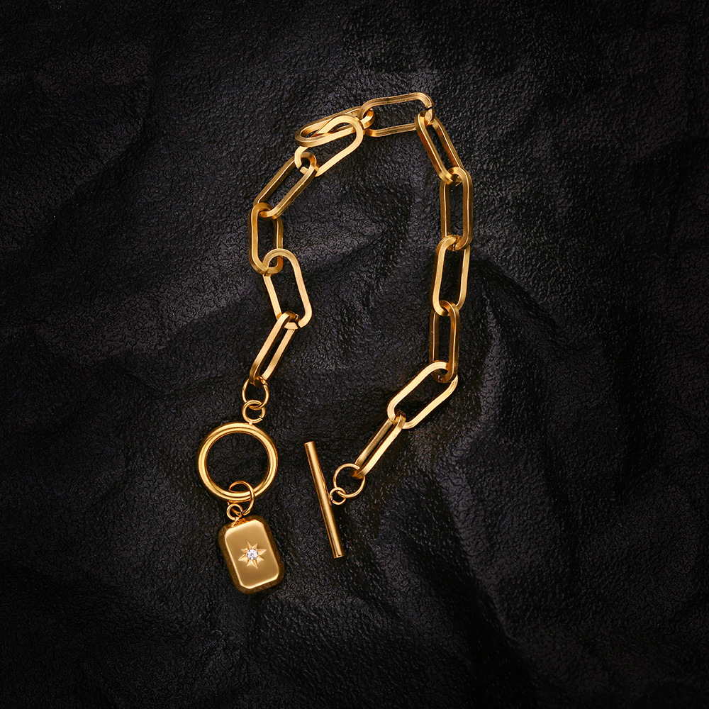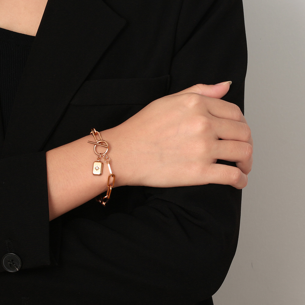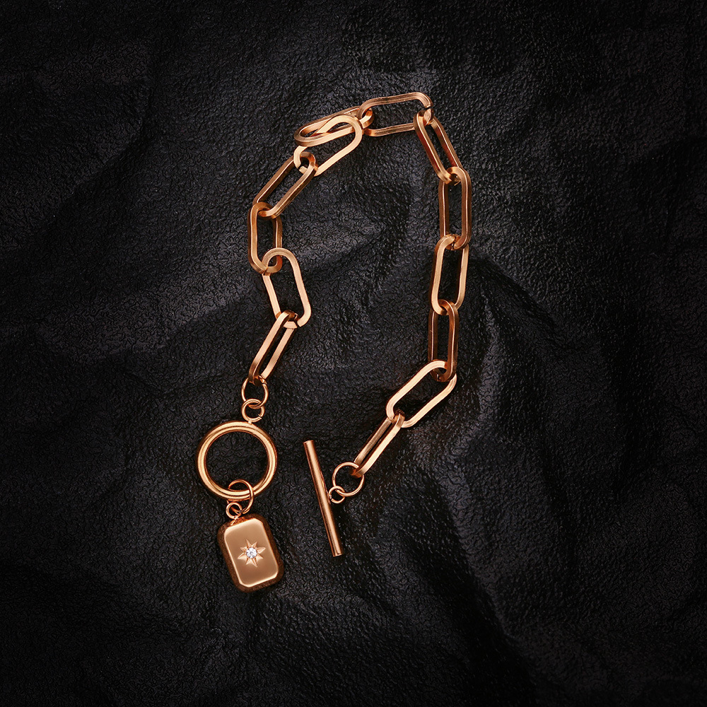 JY02FF Niche Cold Wind Ot Buckle Titanium Steel Thick Bracelet INS Wind Gold Diamond Bamang Star Titanium Steel Bracelet (Material: titanium steel)