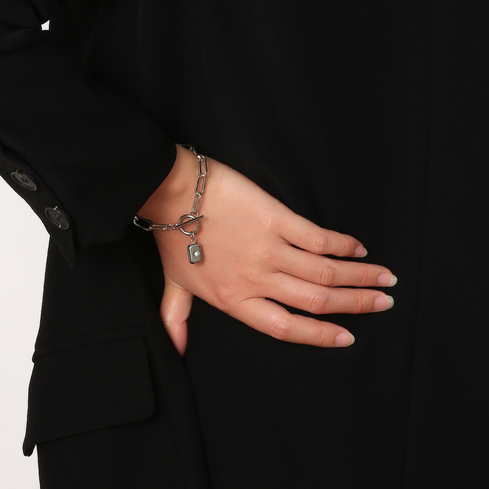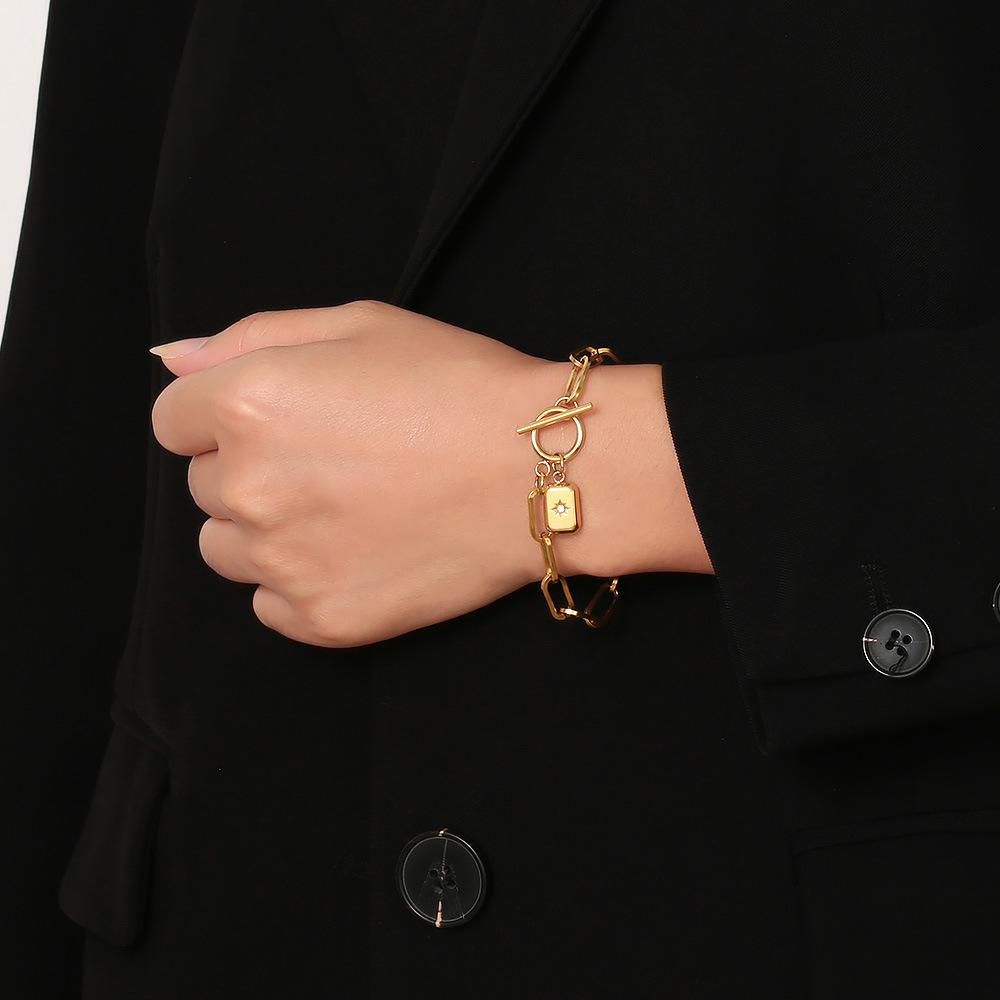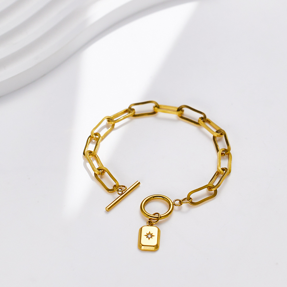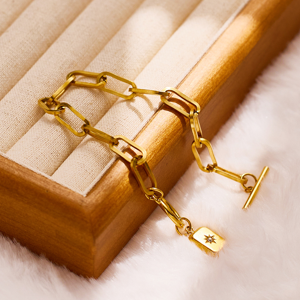 JY02FF Niche Cold Wind Ot Buckle Titanium Steel Thick Bracelet INS Wind Gold Diamond Bamang Star Titanium Steel Bracelet (Material: titanium steel)