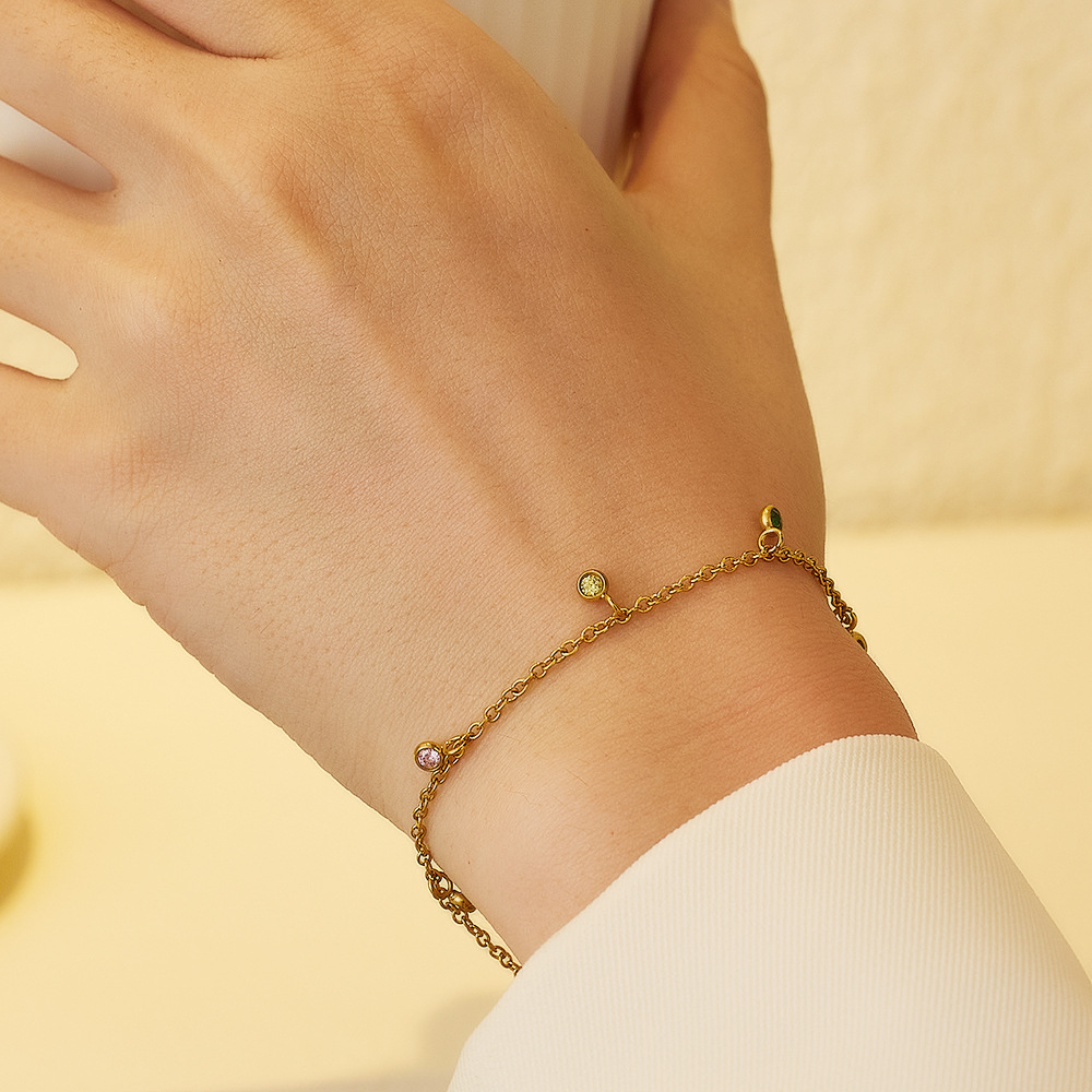 Verringere die Menge für JY02FF Retro Style 2023 New Exquisite Light Luxury Color Treasure Bracelet Trendy Bracelet Women's Small And Simple Style (Material: titanium steel)