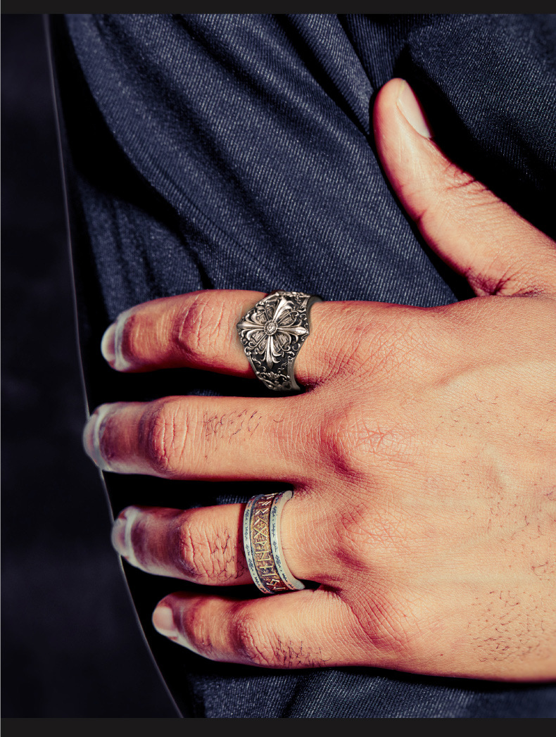 JY01WJ European And American Iris Silver Ring Baroque Carved Silver Jewelry Single Personality Trendy Men's Opening Adjusting Tail Ring Engraving
