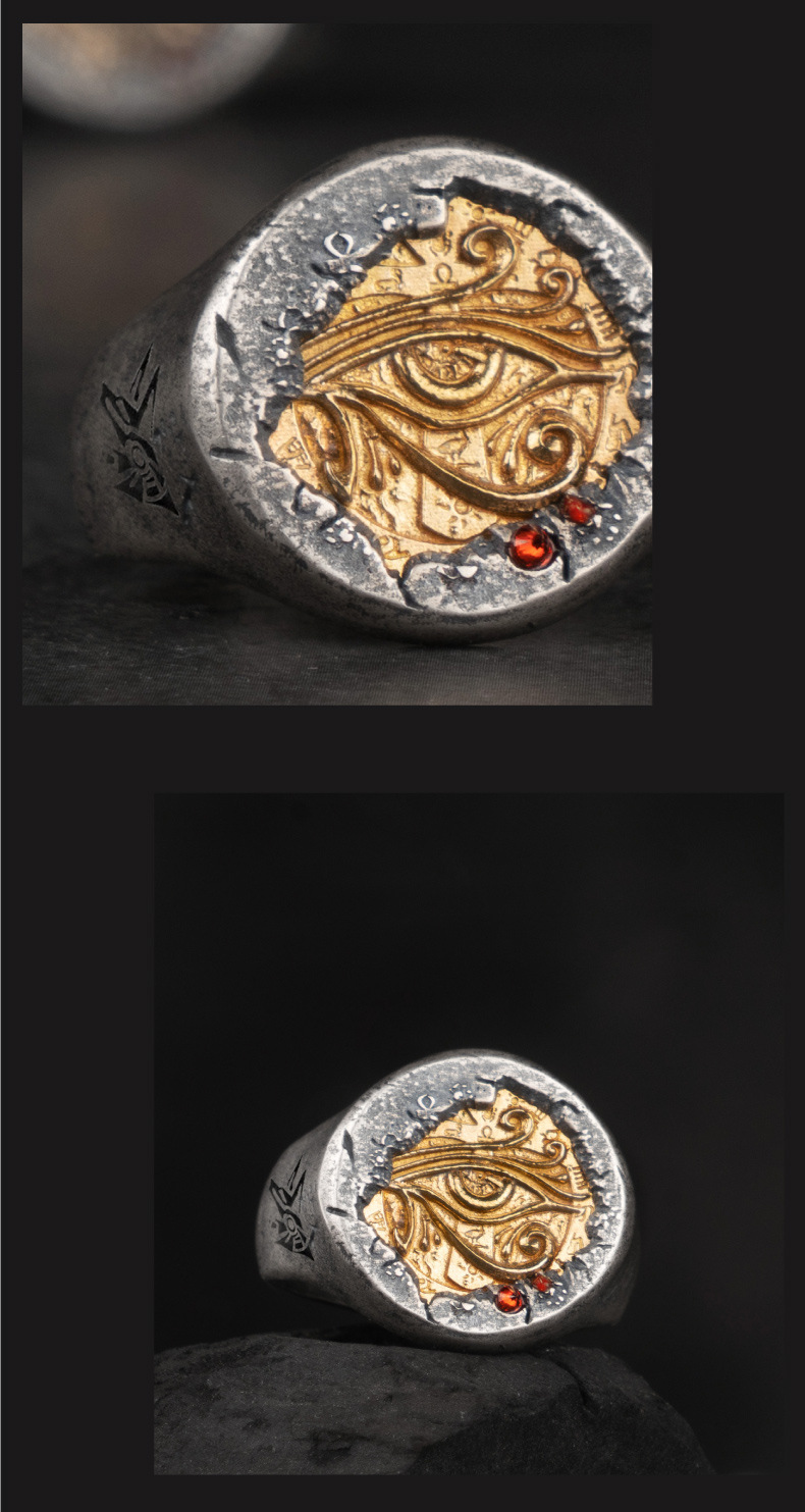 Erhöhe die Menge für JY01WJ Pharaoh's Treasure Silver Bronze Ring Eye Of Horus Silver Ring Fashionists' Tail Ring Food Finger Ring Personalized Opening Silver Jewelry