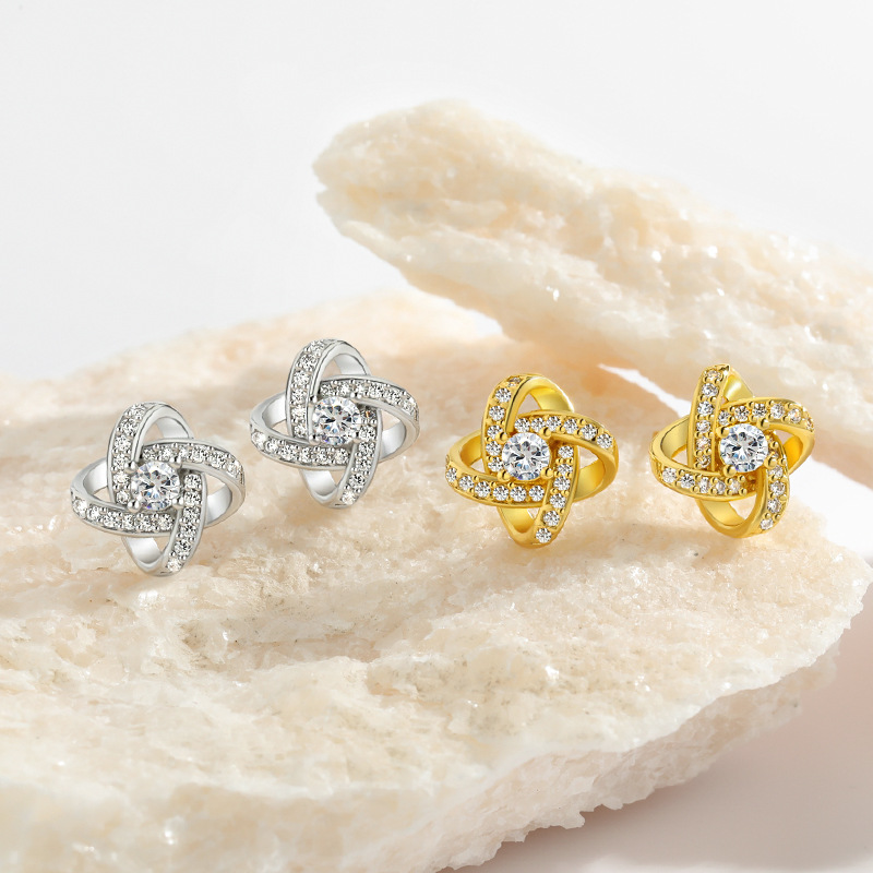 AXE044 Threaded Flower Rotating Earrings Small Fragrant Style Korean Lucky Grass Necklace Set Four-leaf Clover Earrings