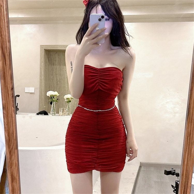 JR01QJ 2023 Women's Sexy Nightclub Backless Tube Top Slimming Hip Dress