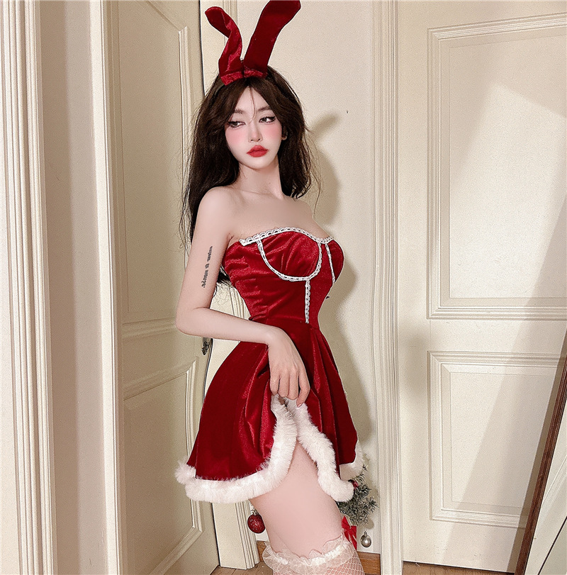 JR01QJ 2023 Women's Sexy Wrapped Chest Christmas New Year Waist Big Dress