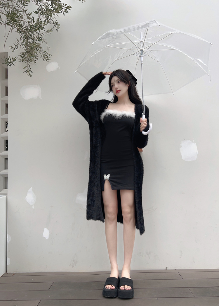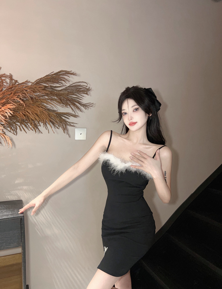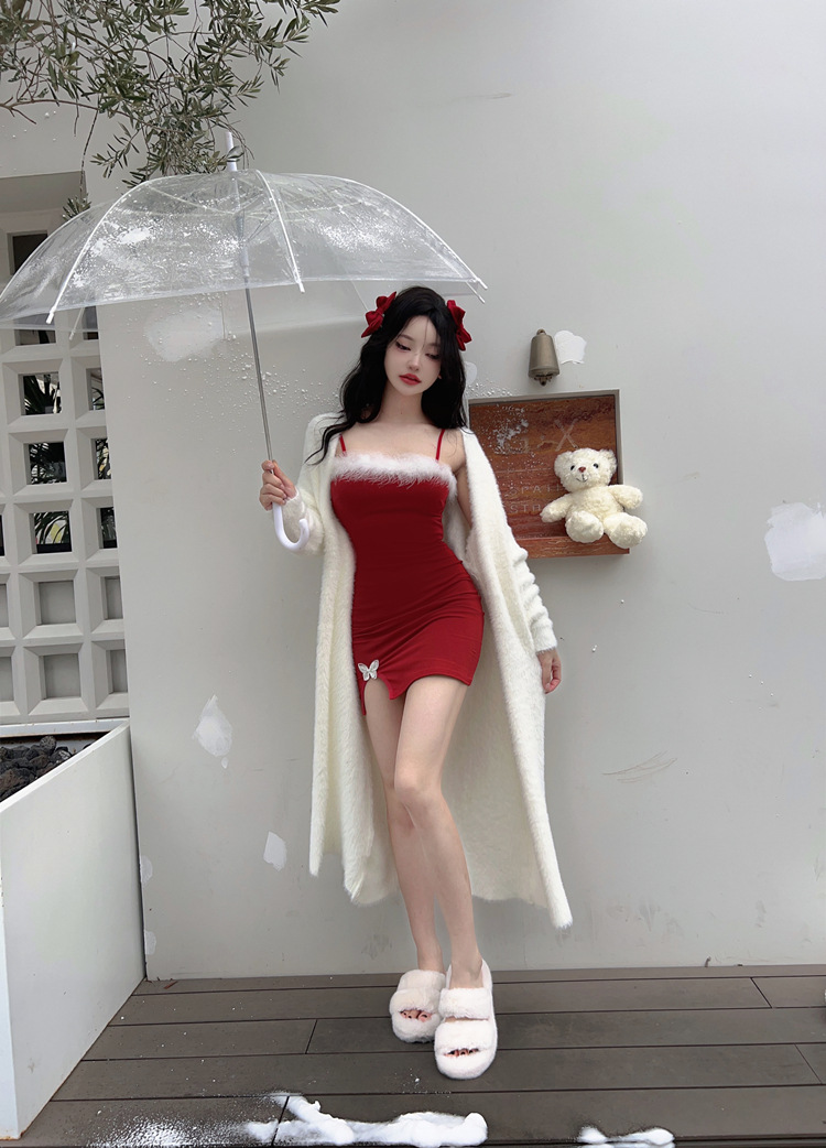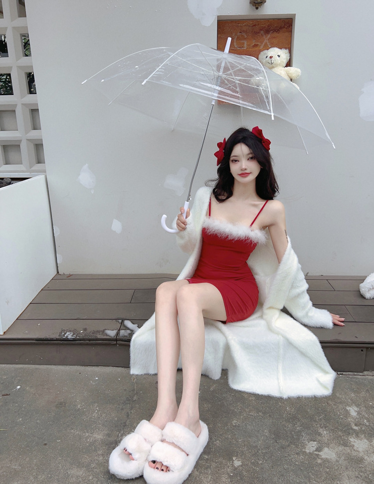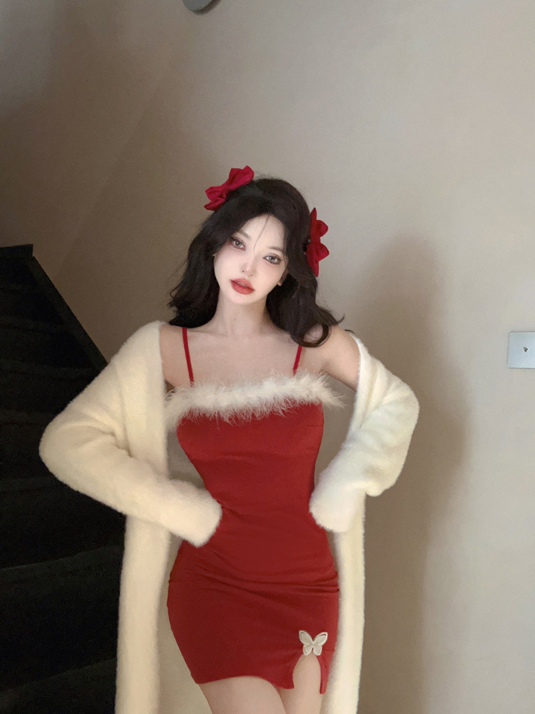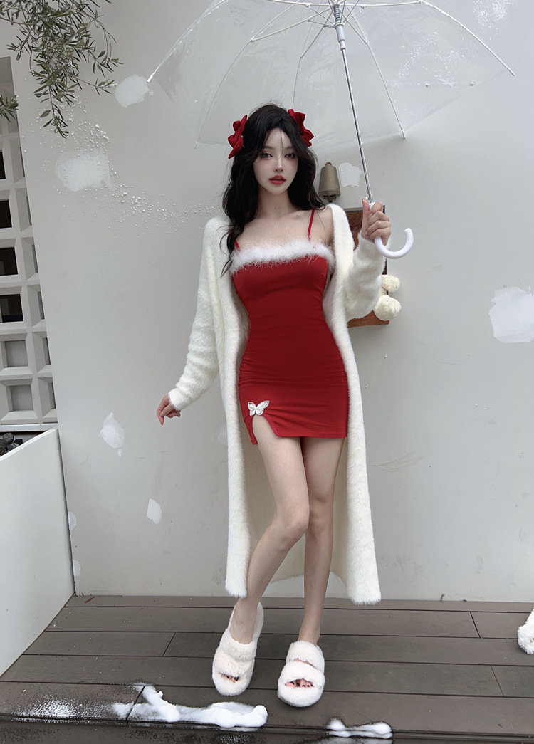 JR01QJ Women's Sexy Christmas Sling Mao Mao Waist Split Hip Dress