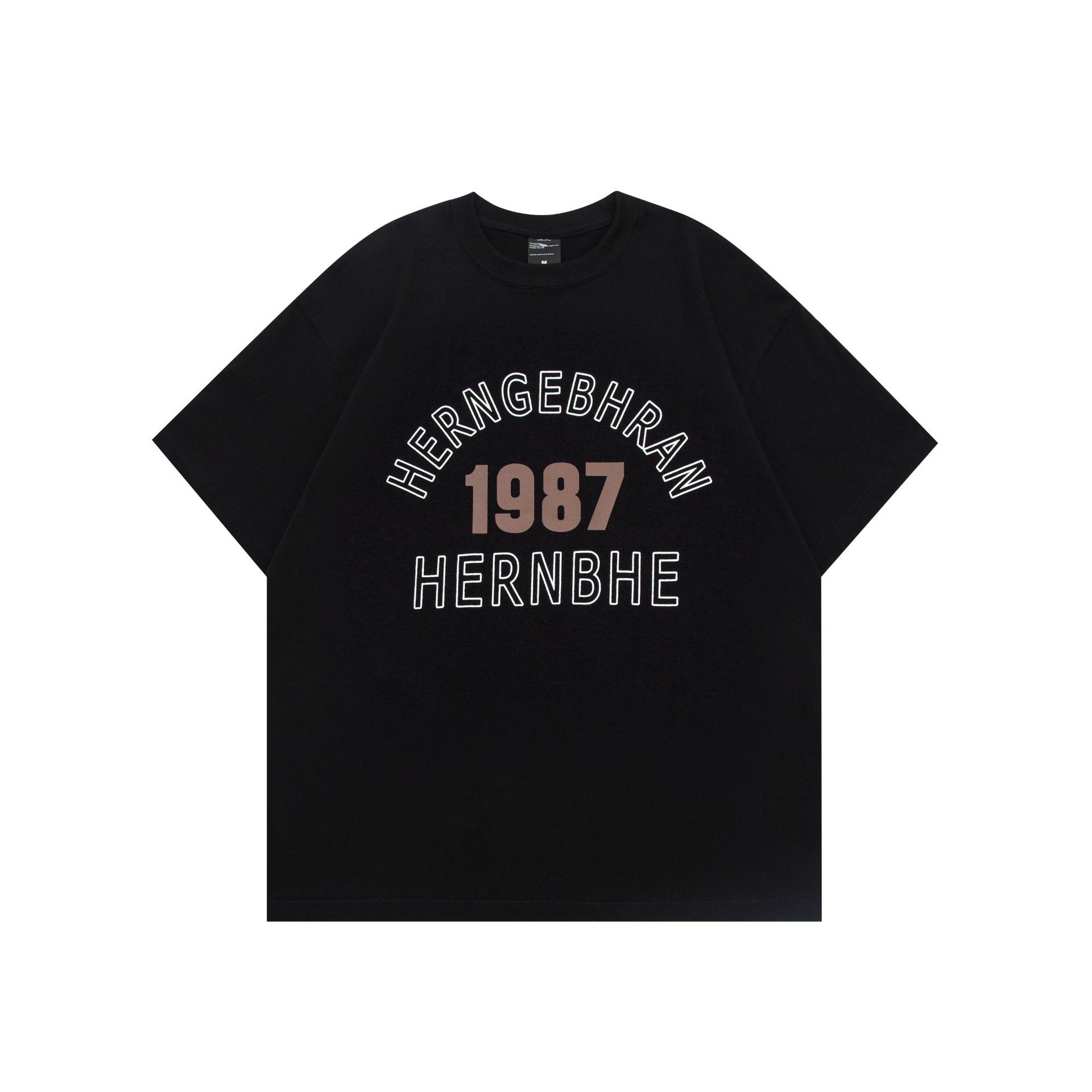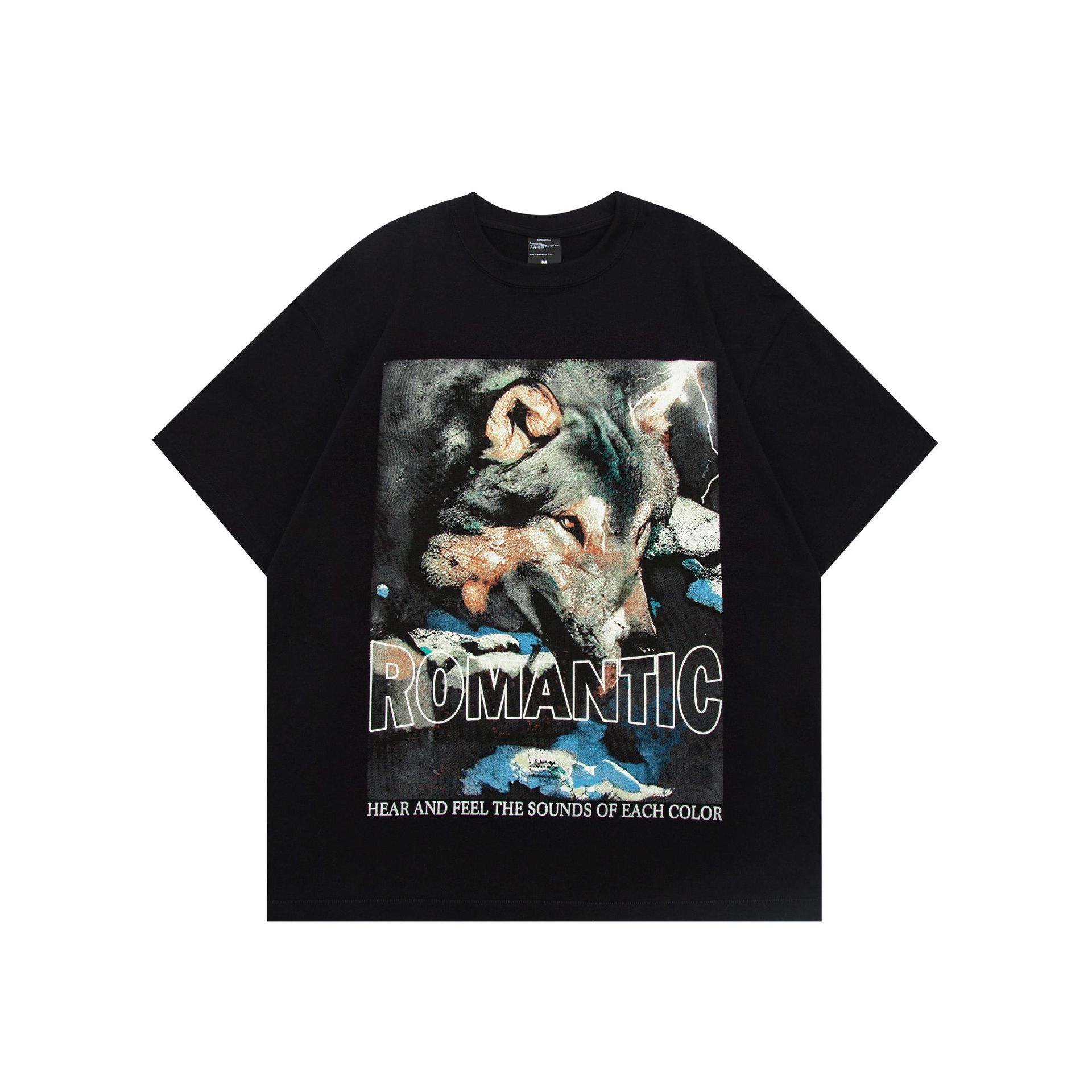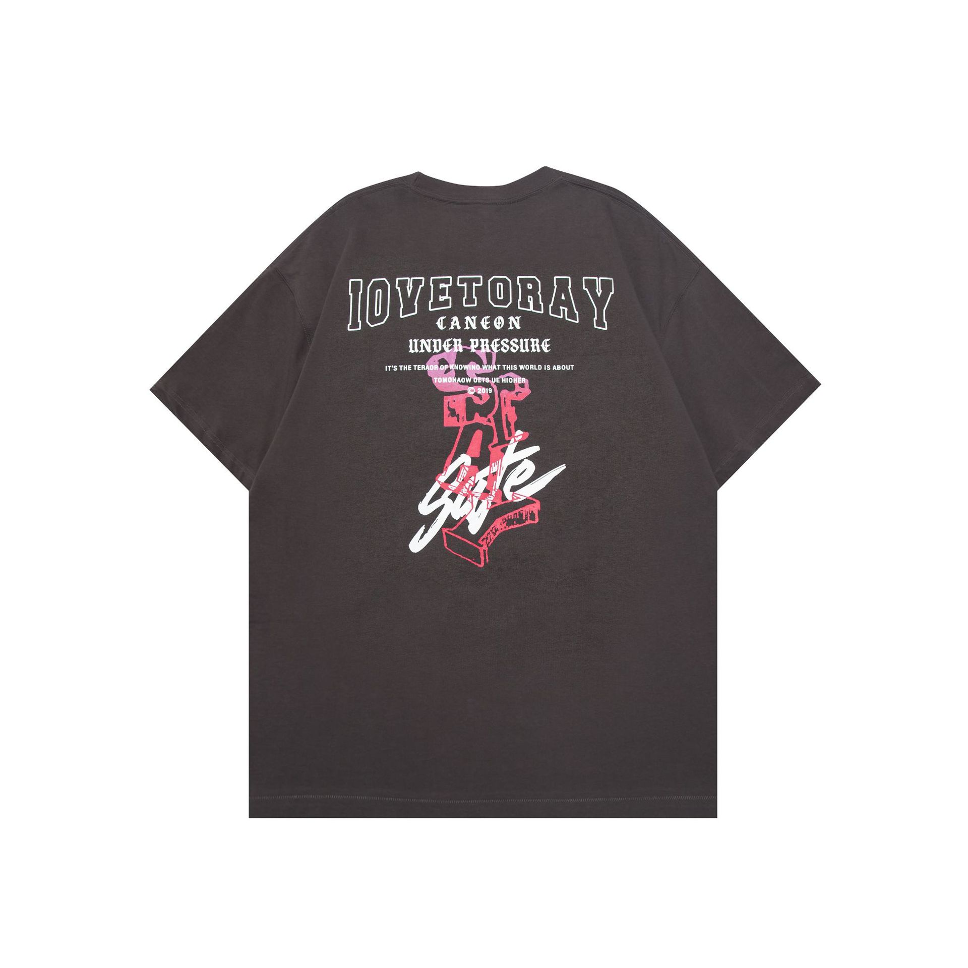 A17VU 270G Heavy Cotton T-shirt Men's Summer New National Fashion Brand Street Letter Printing Shoulder Short Sleeve Loose Men